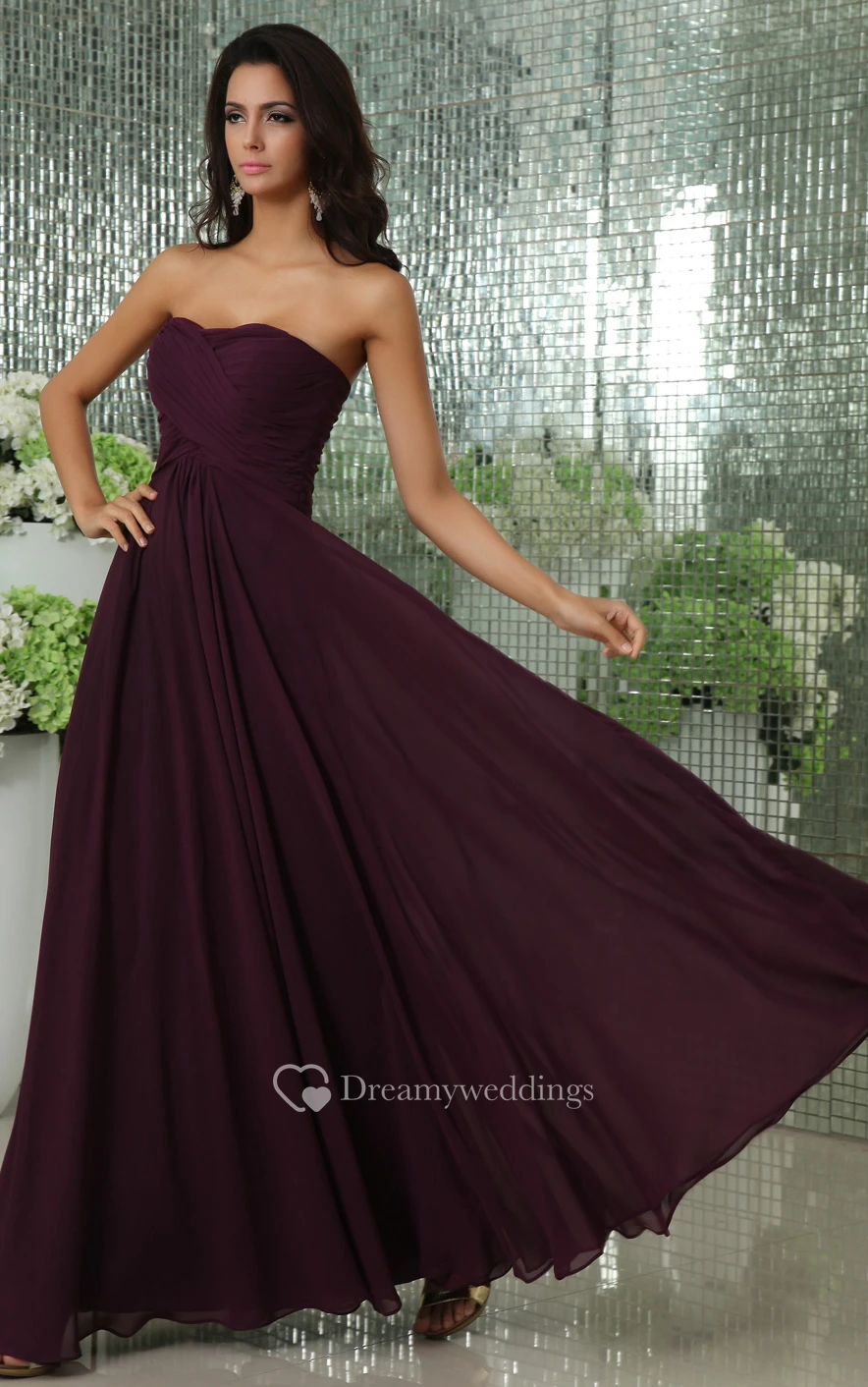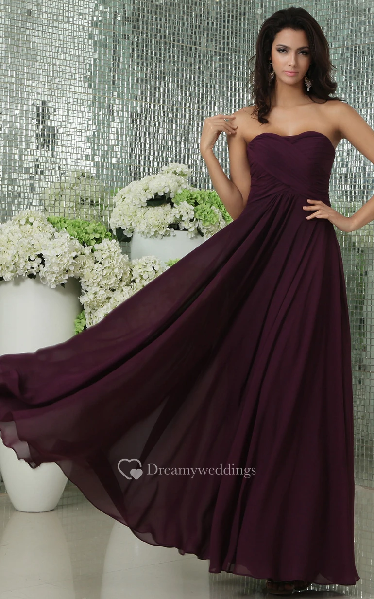 Floor-Length Sweetheart Chiffon Dress With Pleating