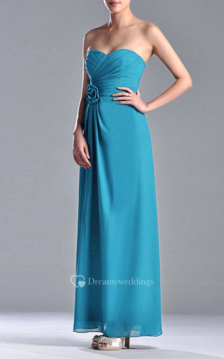 Floor-length Sweetheart Empire Chiffon Bridesmaid Dress With 3D Flower