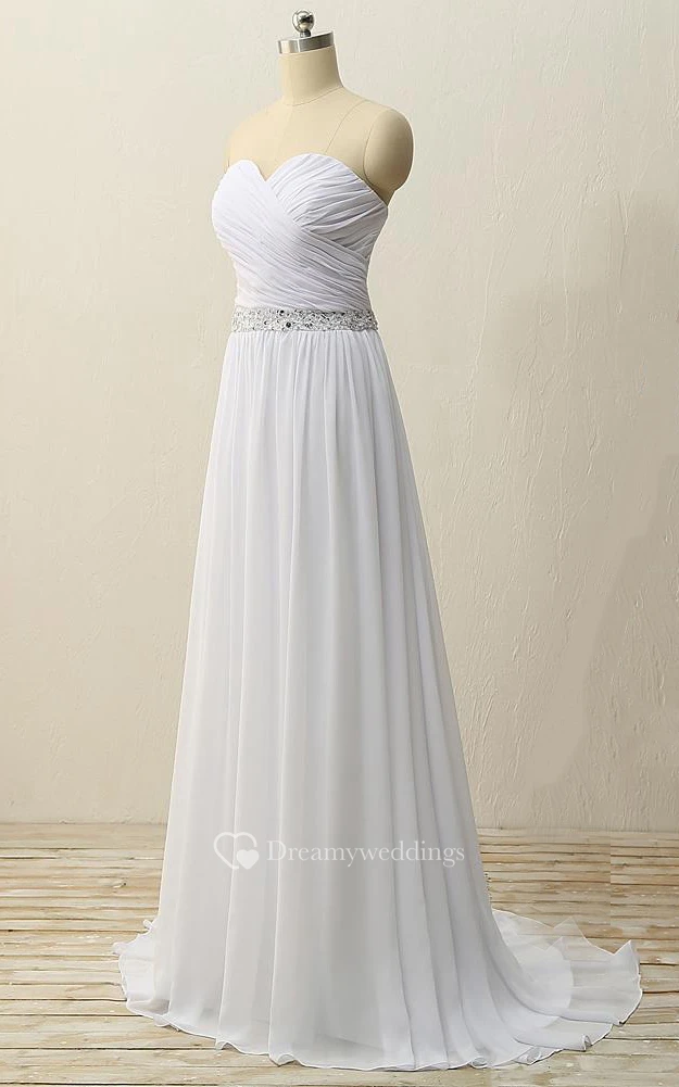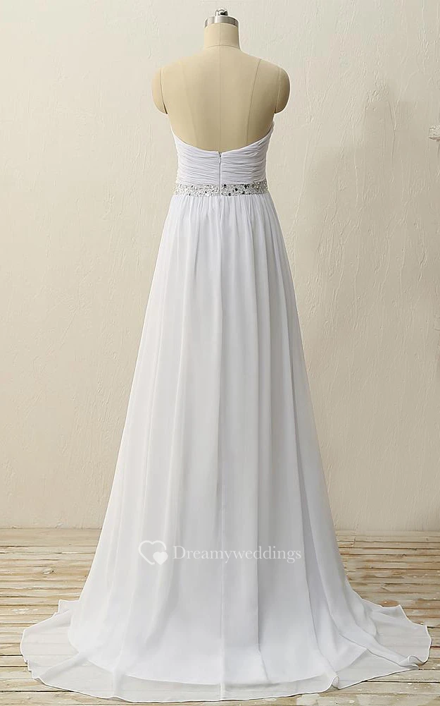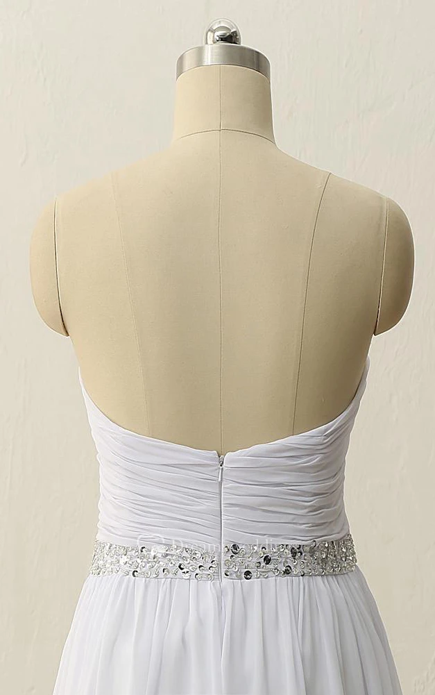 Floor-Length Sweetheart Pleats Beading Zipper Chiffon Dress