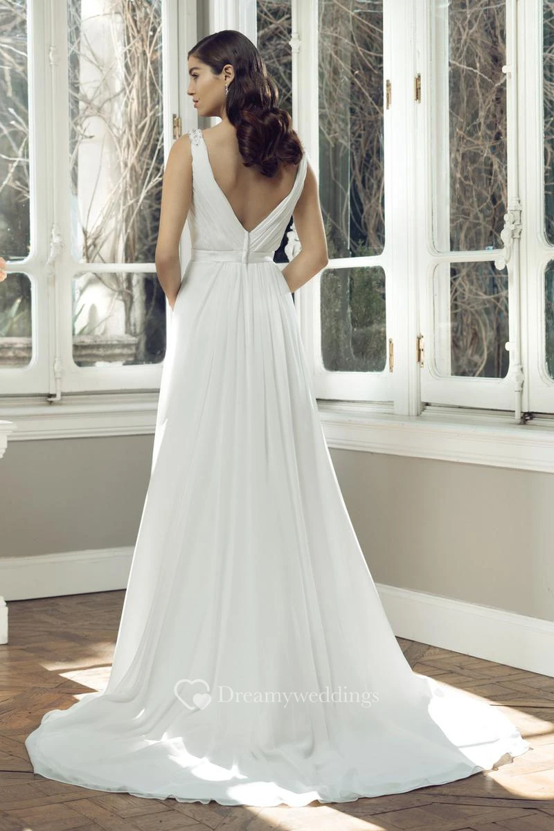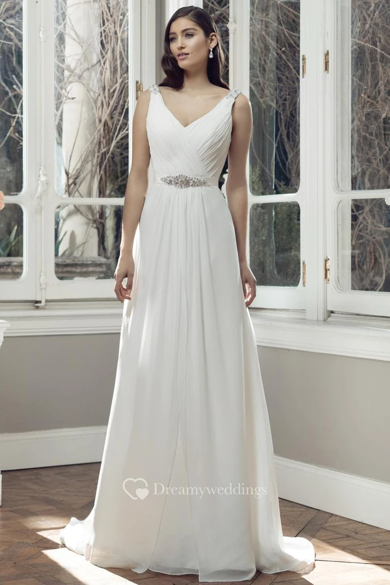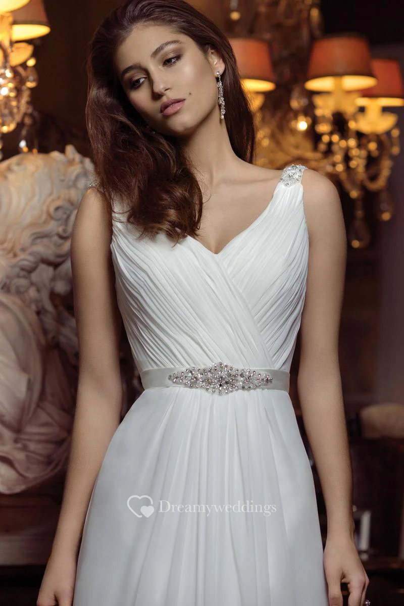 Floor-Length V-Neck Criss-Cross Pleated Chiffon Wedding Dress