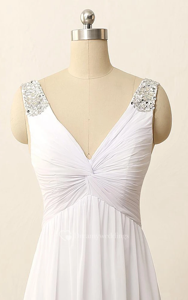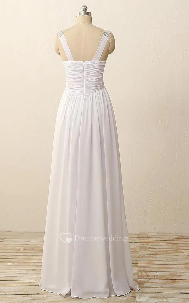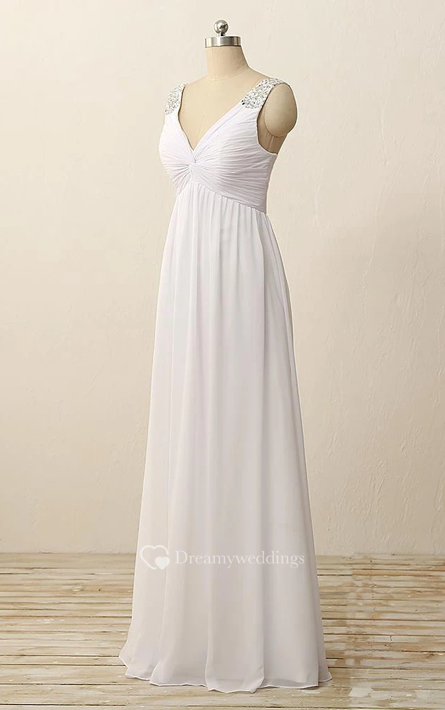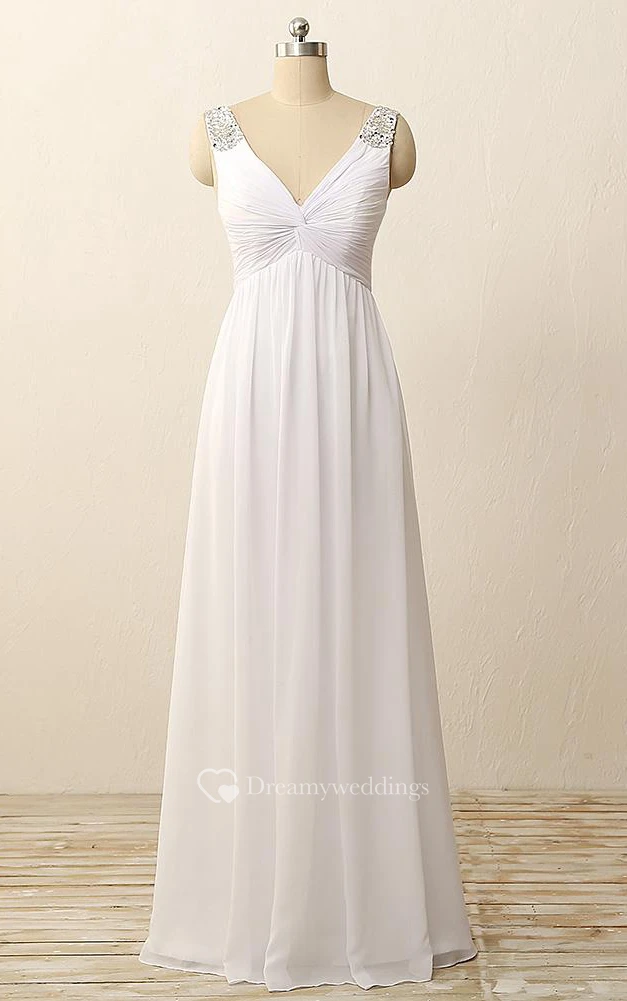 Floor-Length V-Neck Pleats Beading Zipper Chiffon Dress