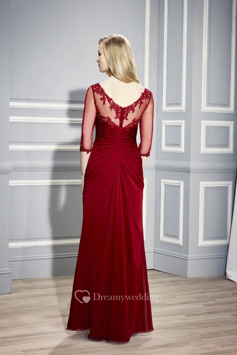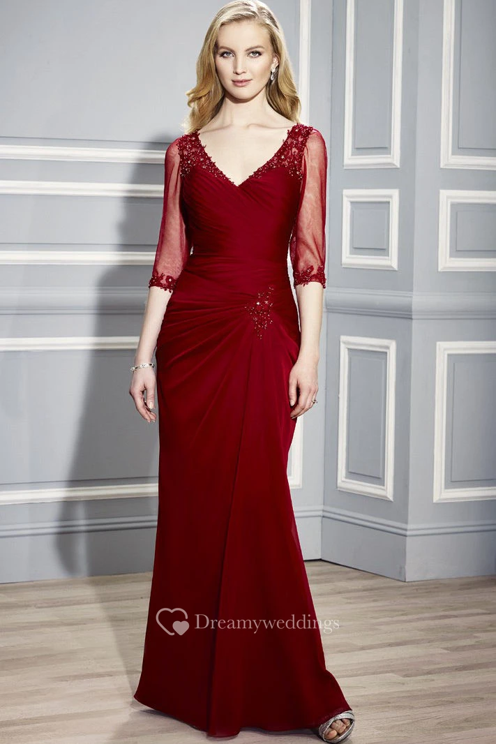 Floor-Length V-Neck Ruched Half-Sleeve Jersey Formal Dress With Beading