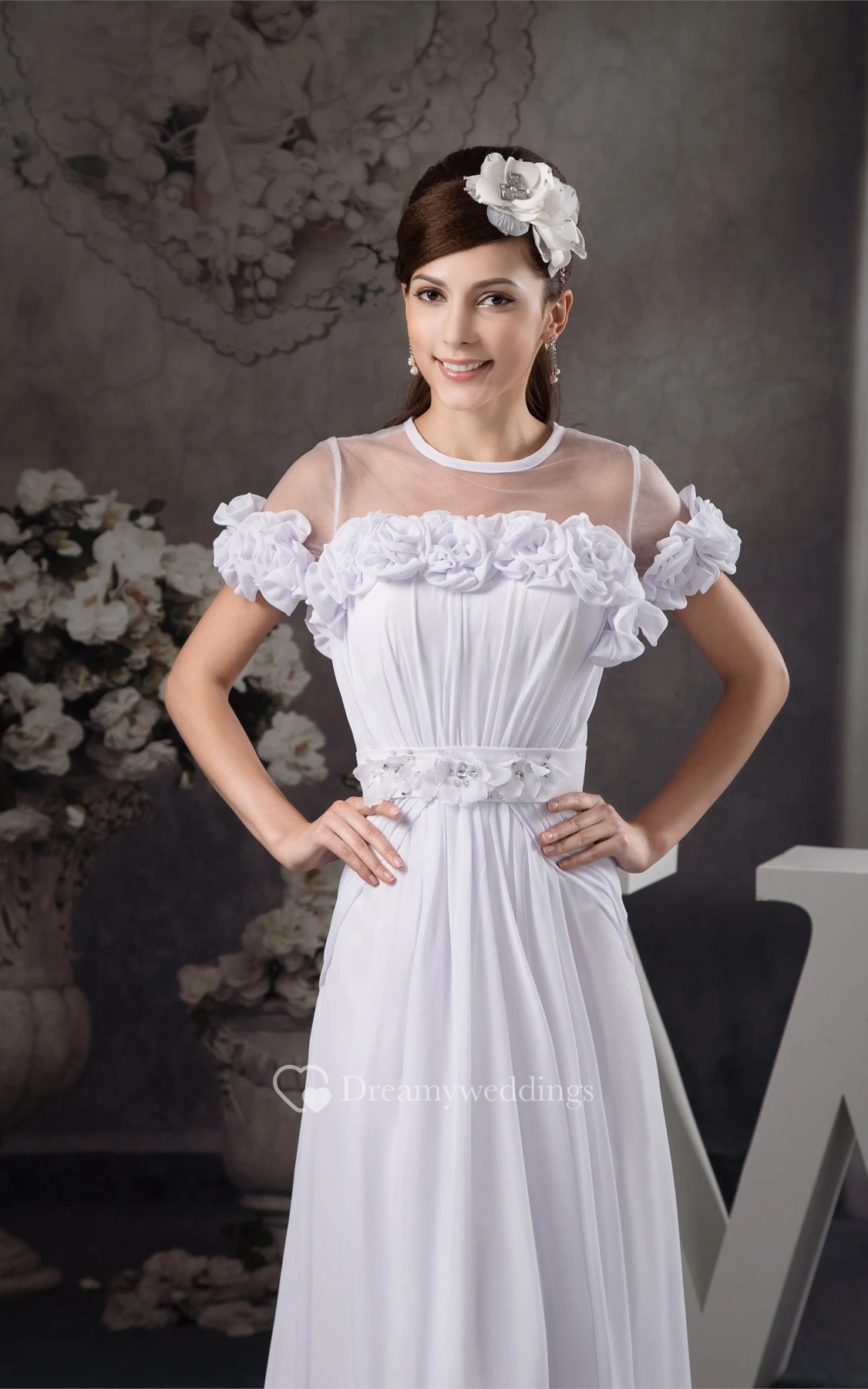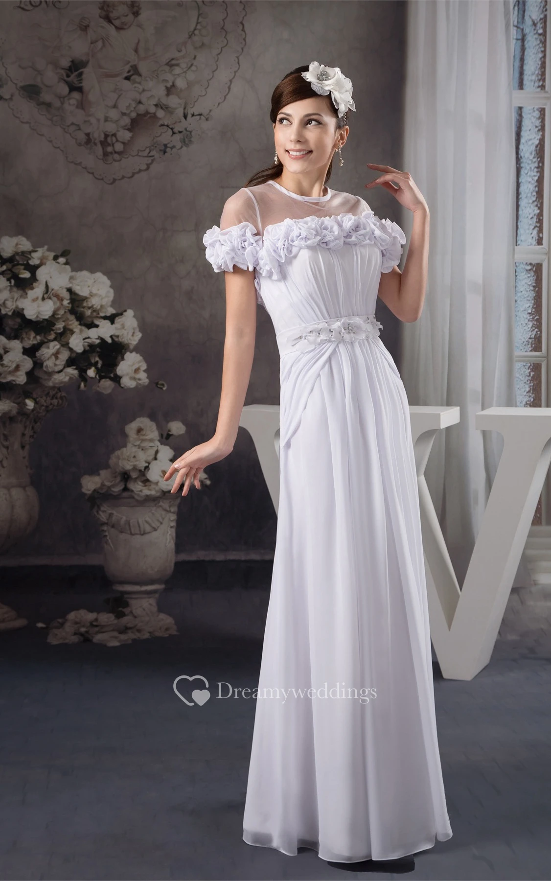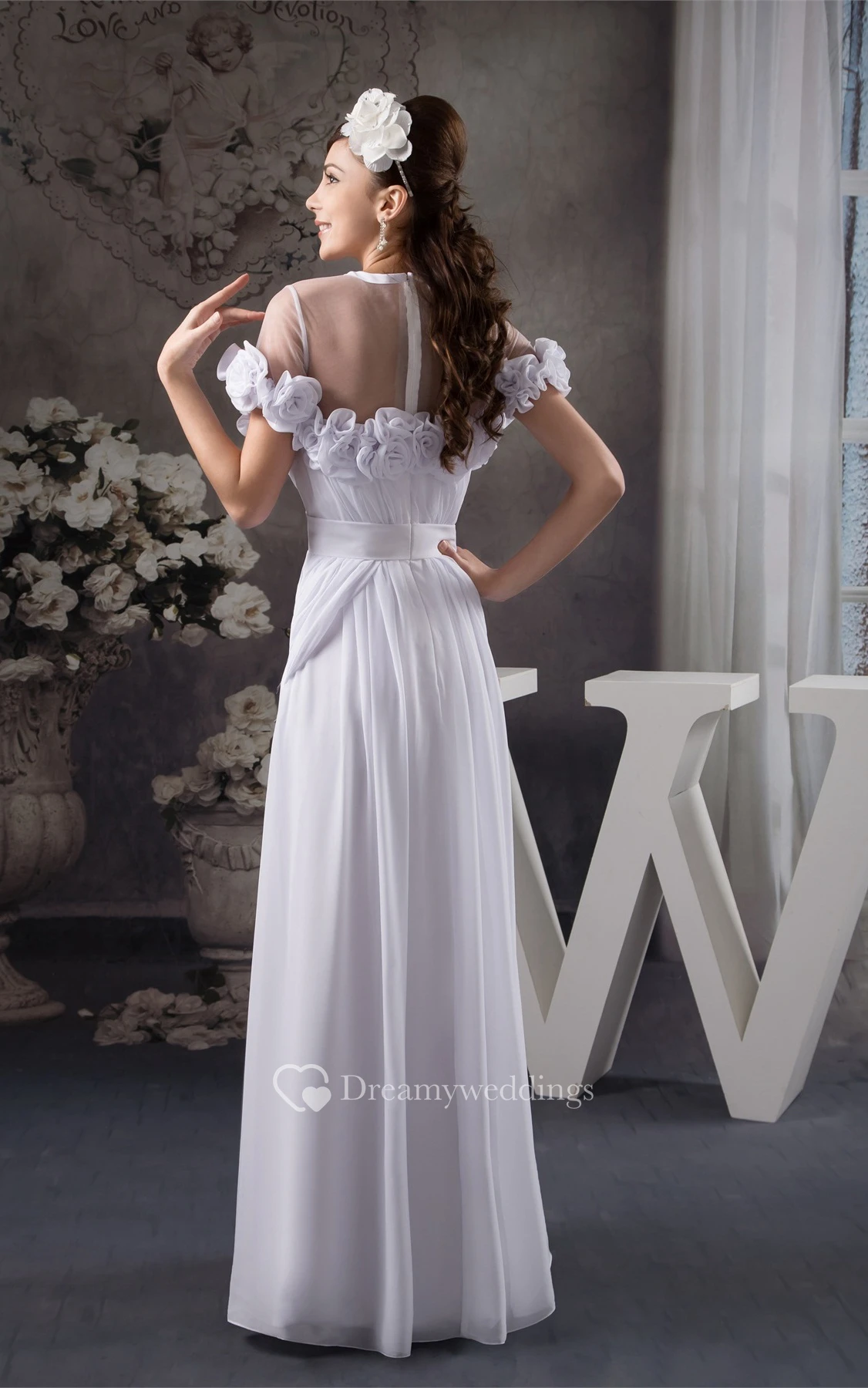 Floral A-Line Floor-Length Chiffon Illusion Neckline and Dress With Pleats