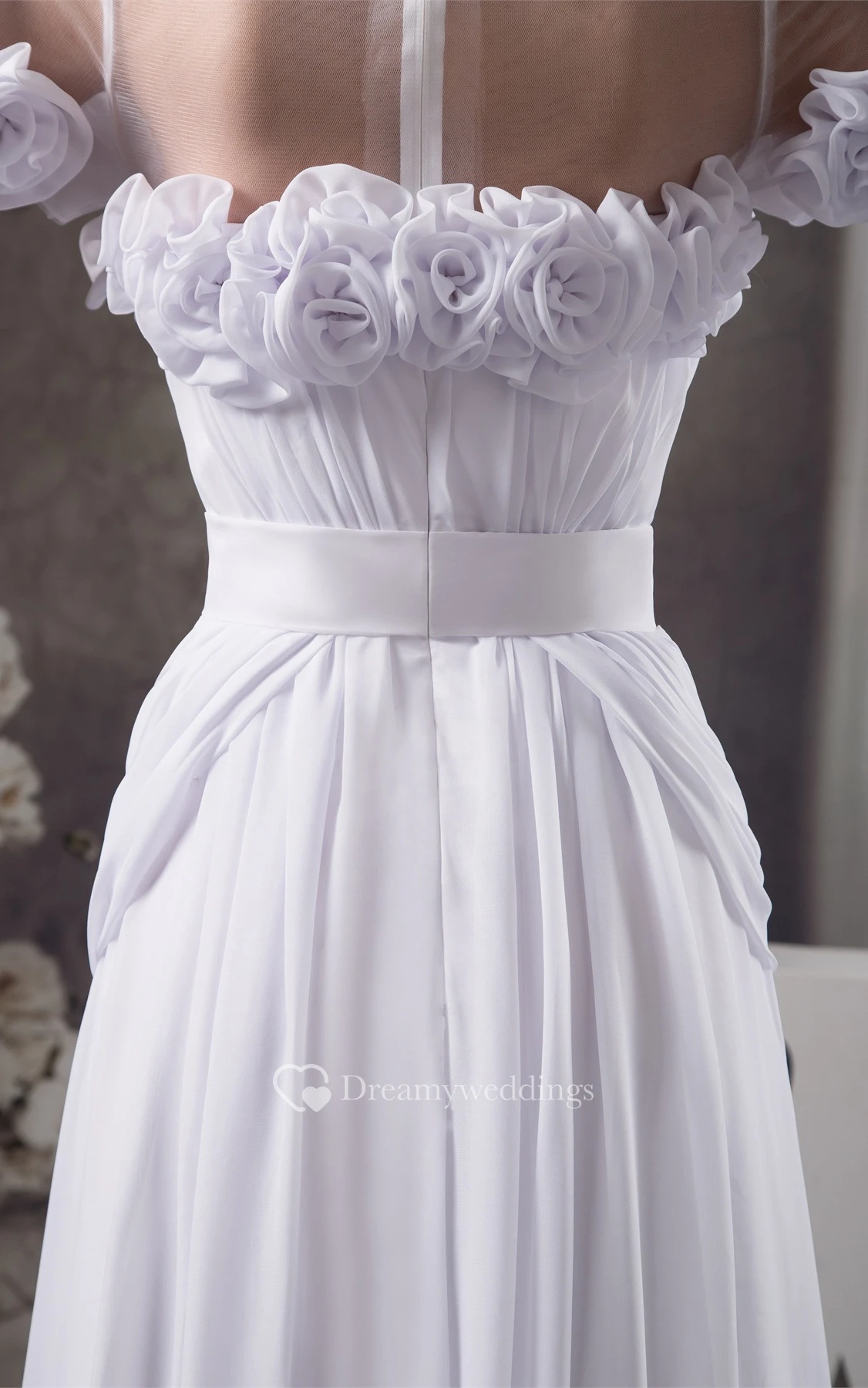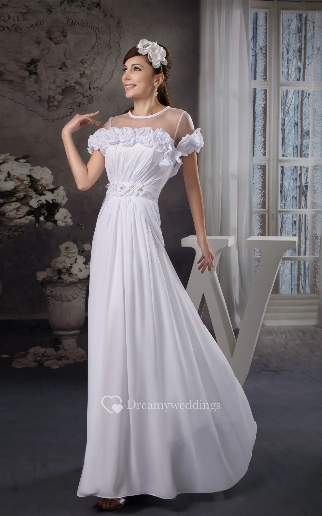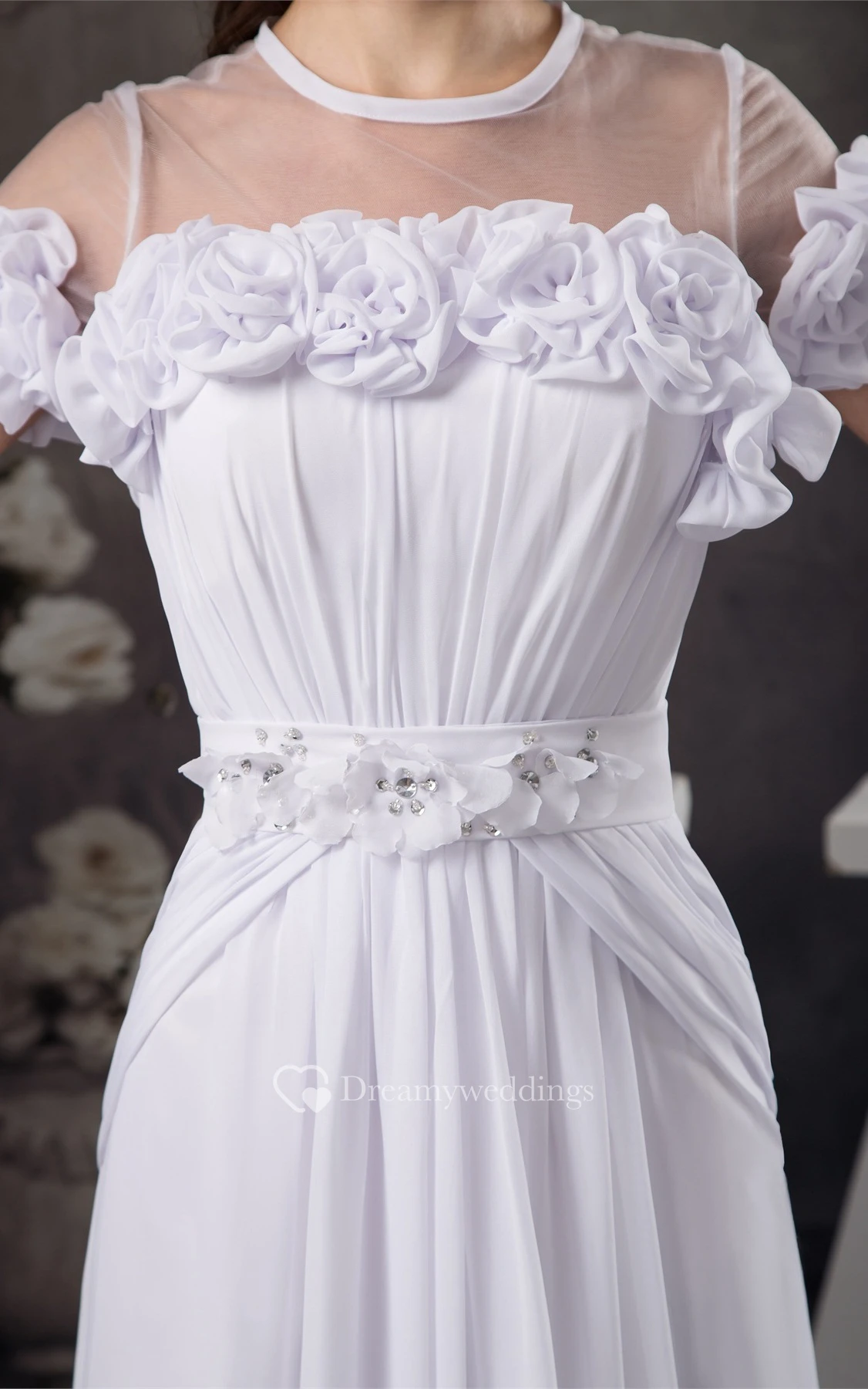 Floral A-Line Floor-Length Chiffon Illusion Neckline and Dress With Pleats