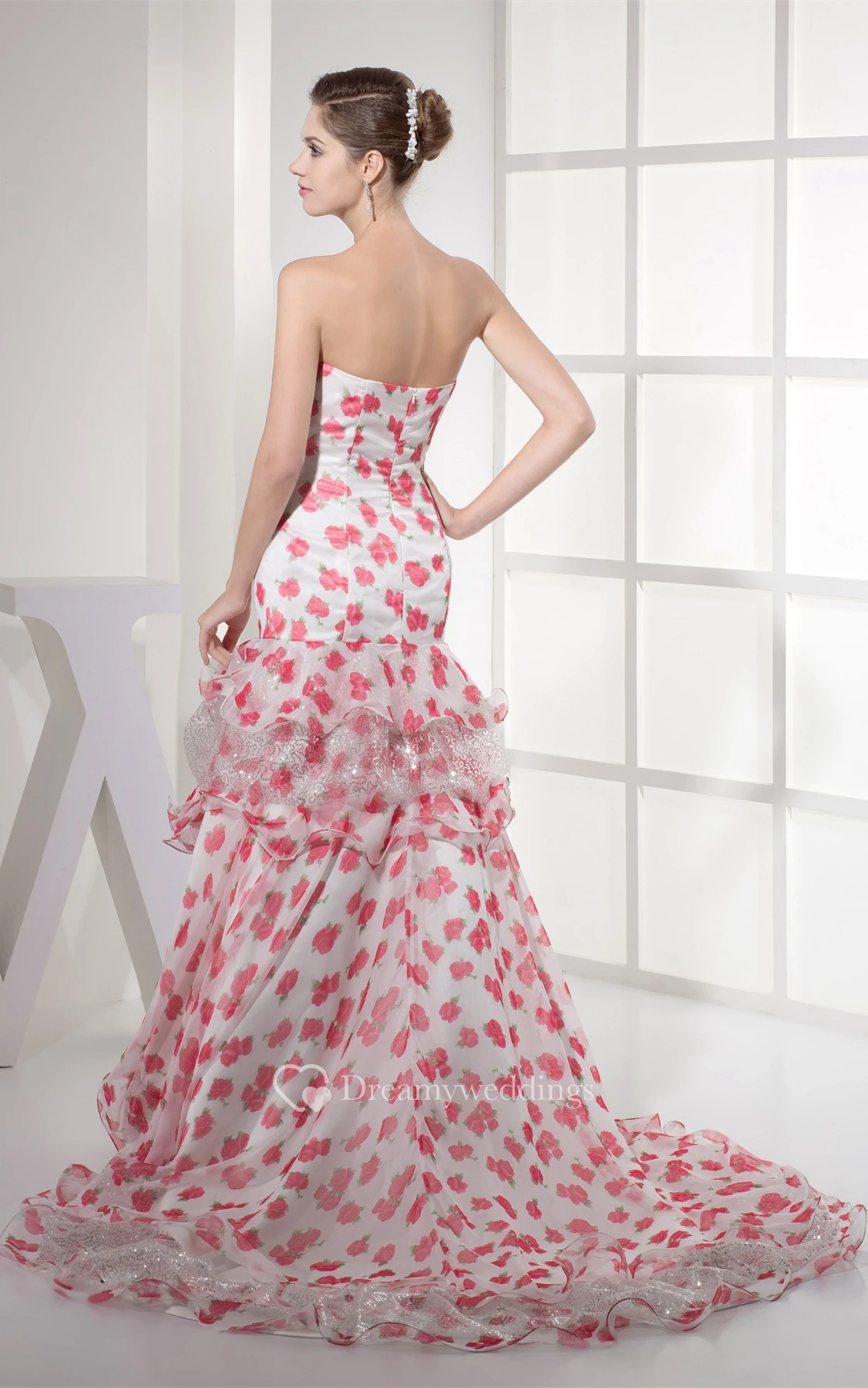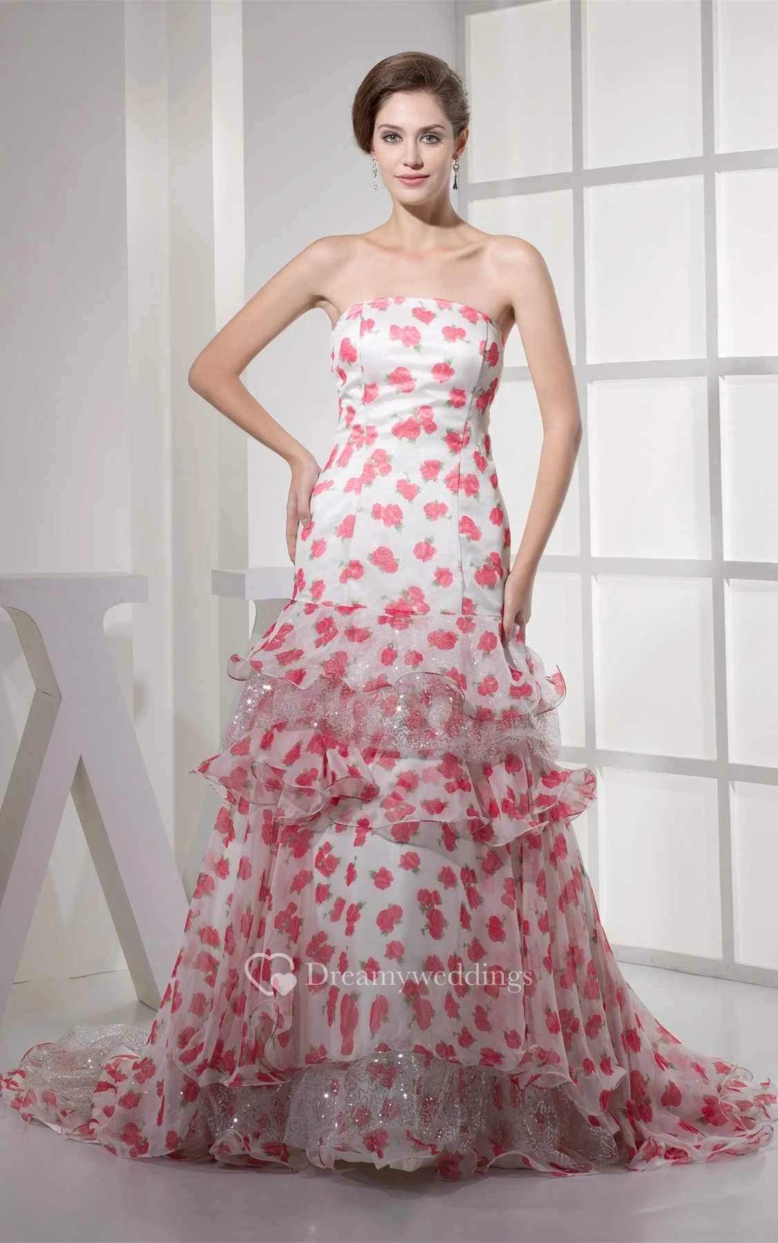 Floral A-Line Sleeveless Peplum and Gown With Sequins