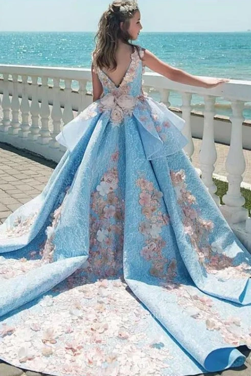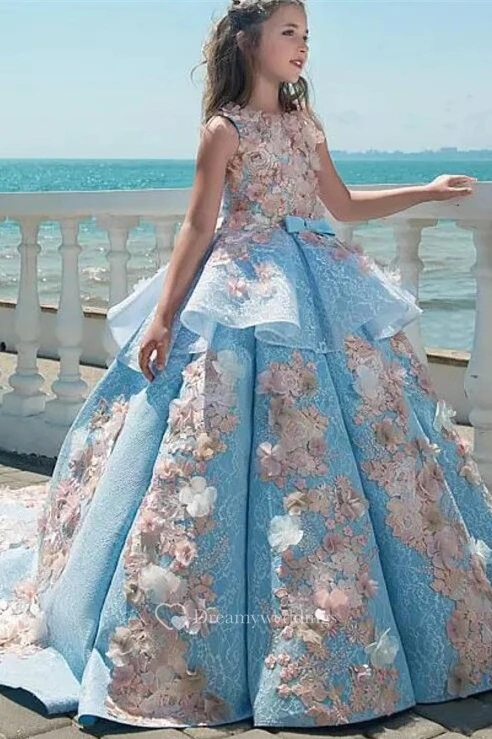 Floral Bateau Sleeveless Ruched Ball Gown Flower Girl Dress