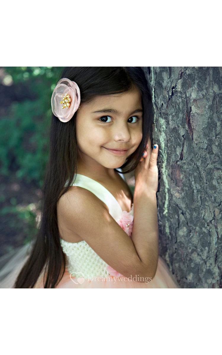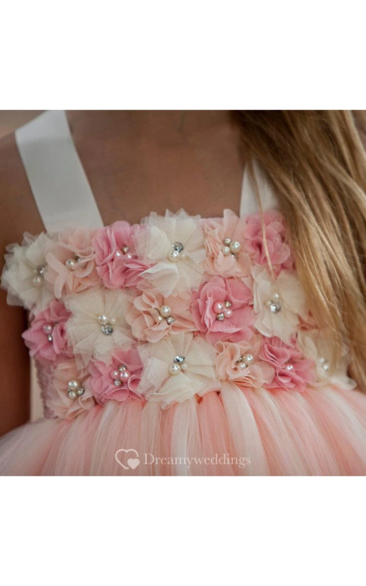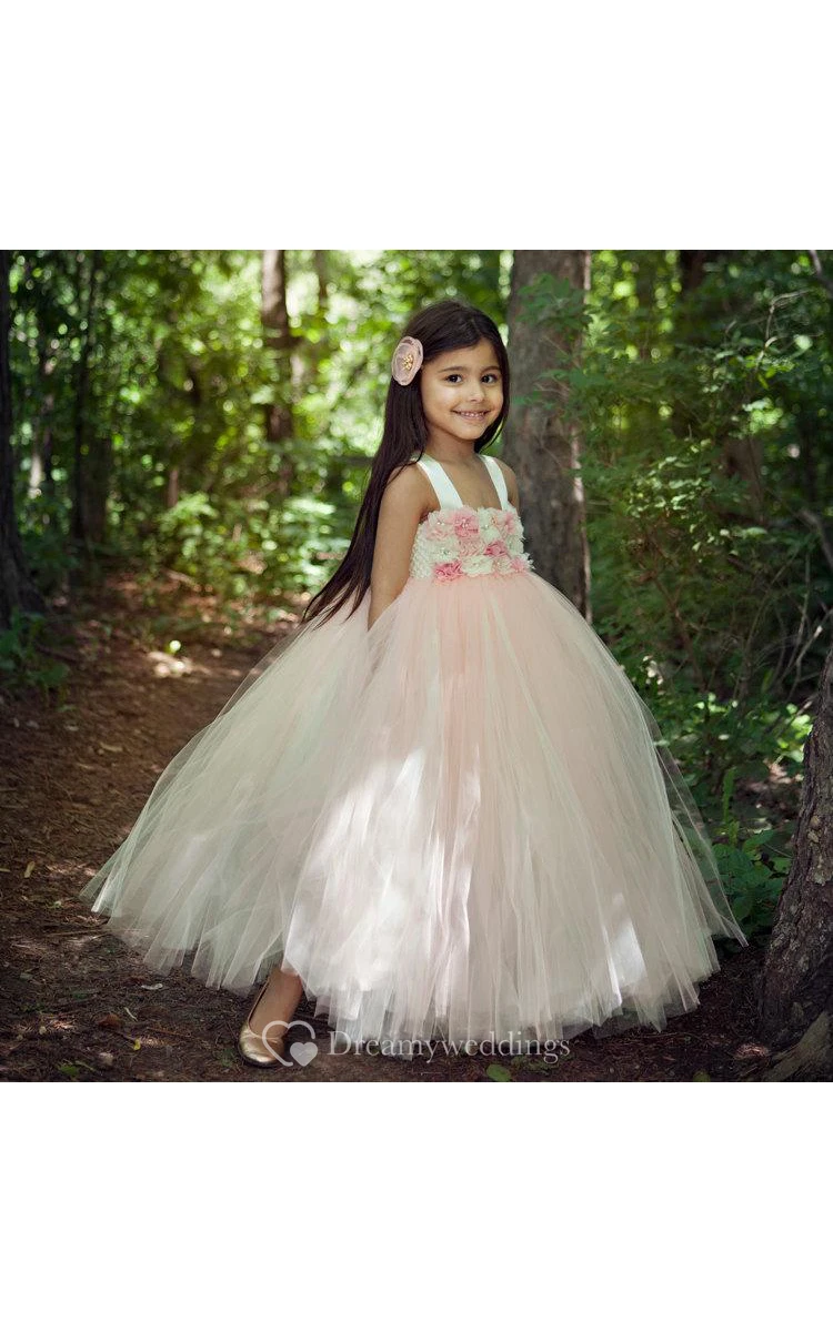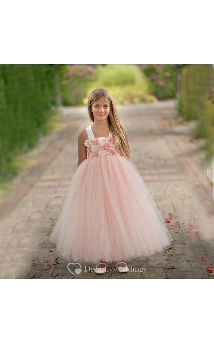 Floral Empire Floor Length Tulle Ball Gown Flower Girl