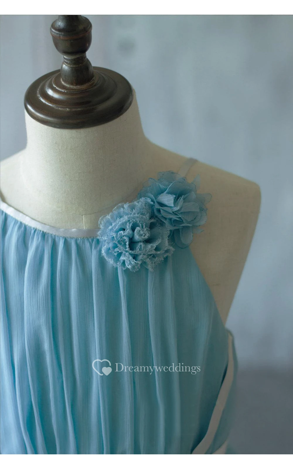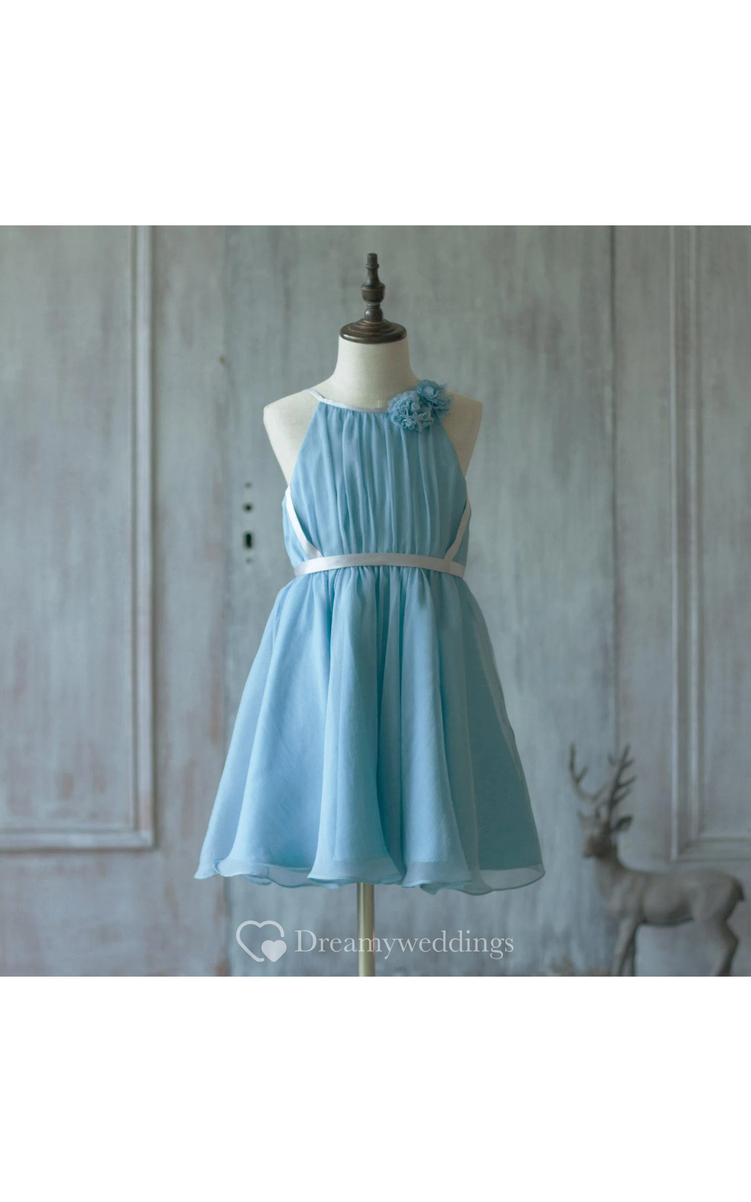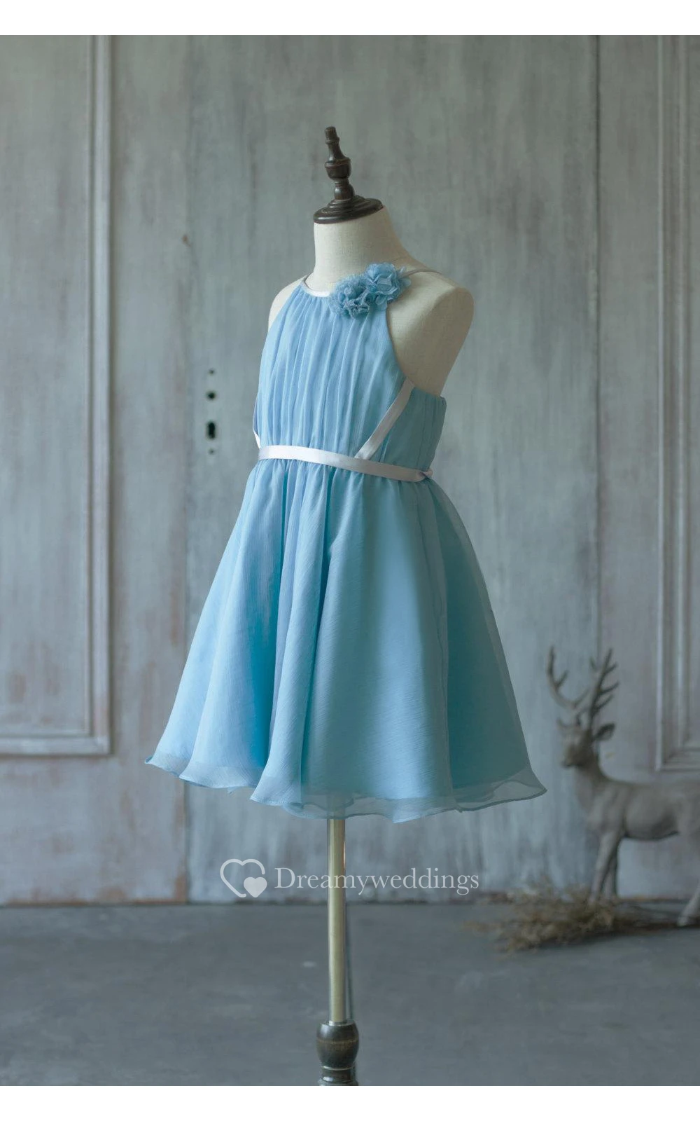 Floral High Neck Sleeveless Pleated A-line Knee Length Chiffon Dress