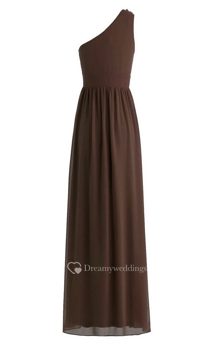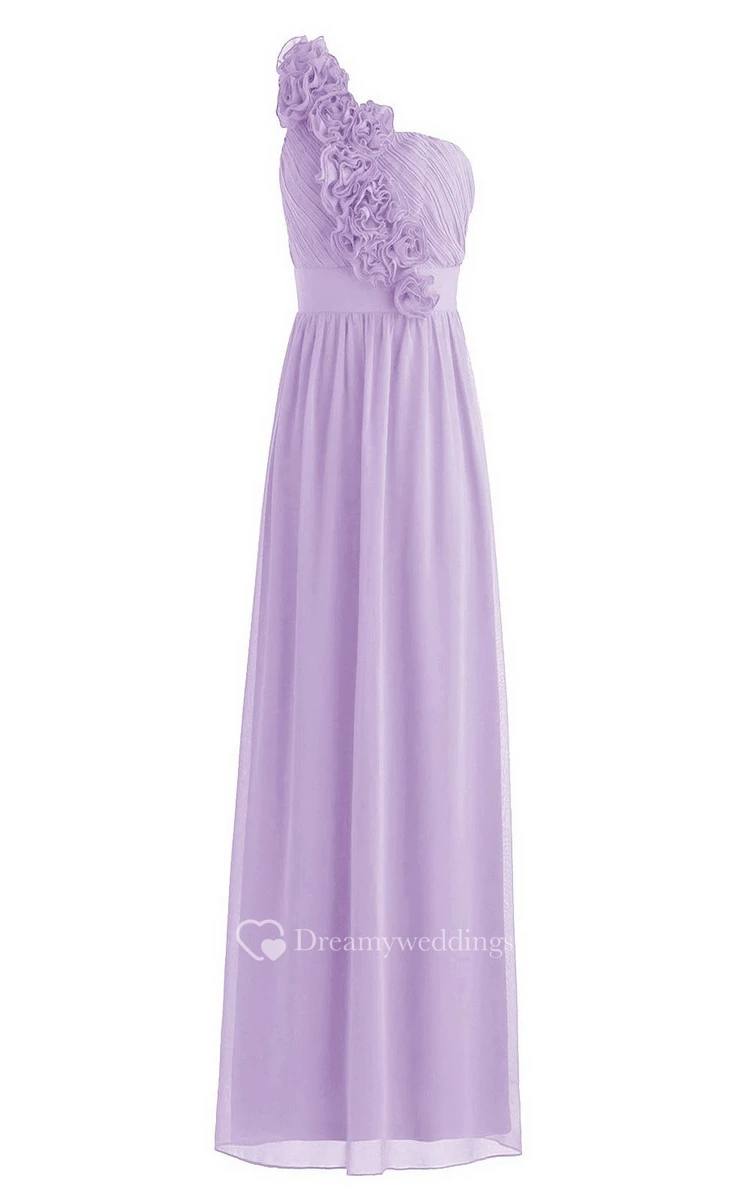 Floral One-shoulder Chiffon A-line Gown With Band