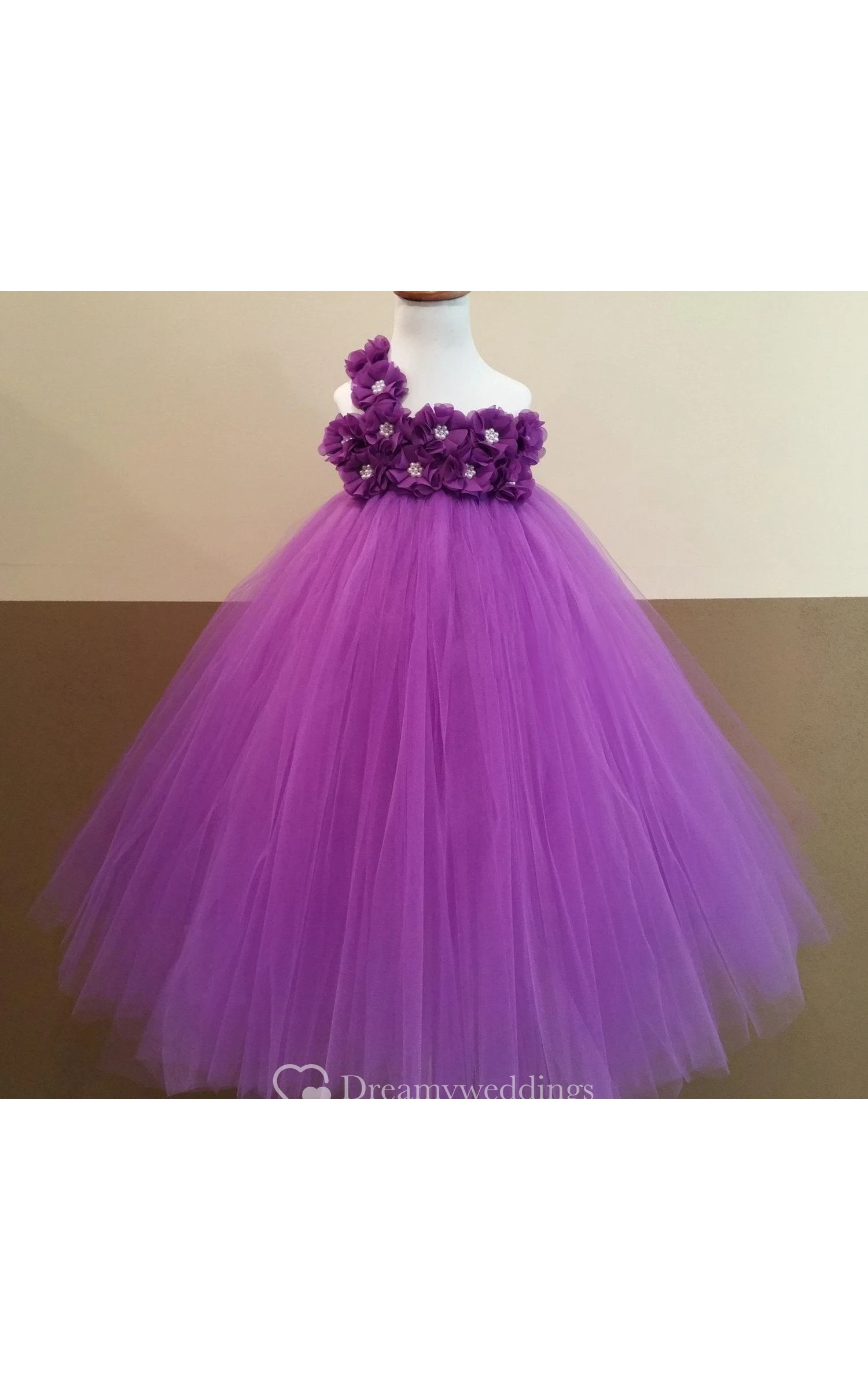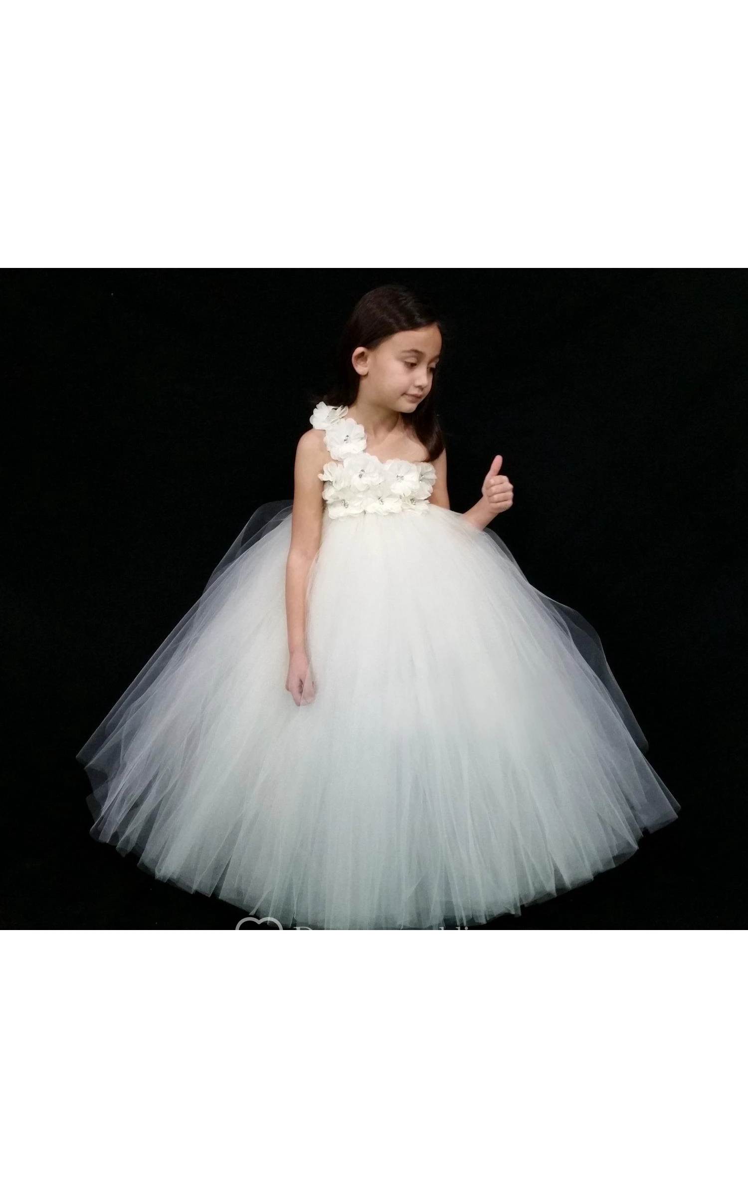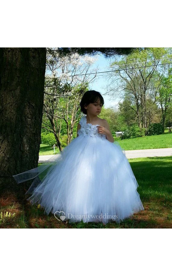 Floral One Shoulder Empire Tulle Ball Gown With Bow