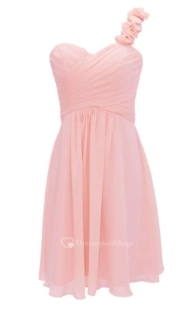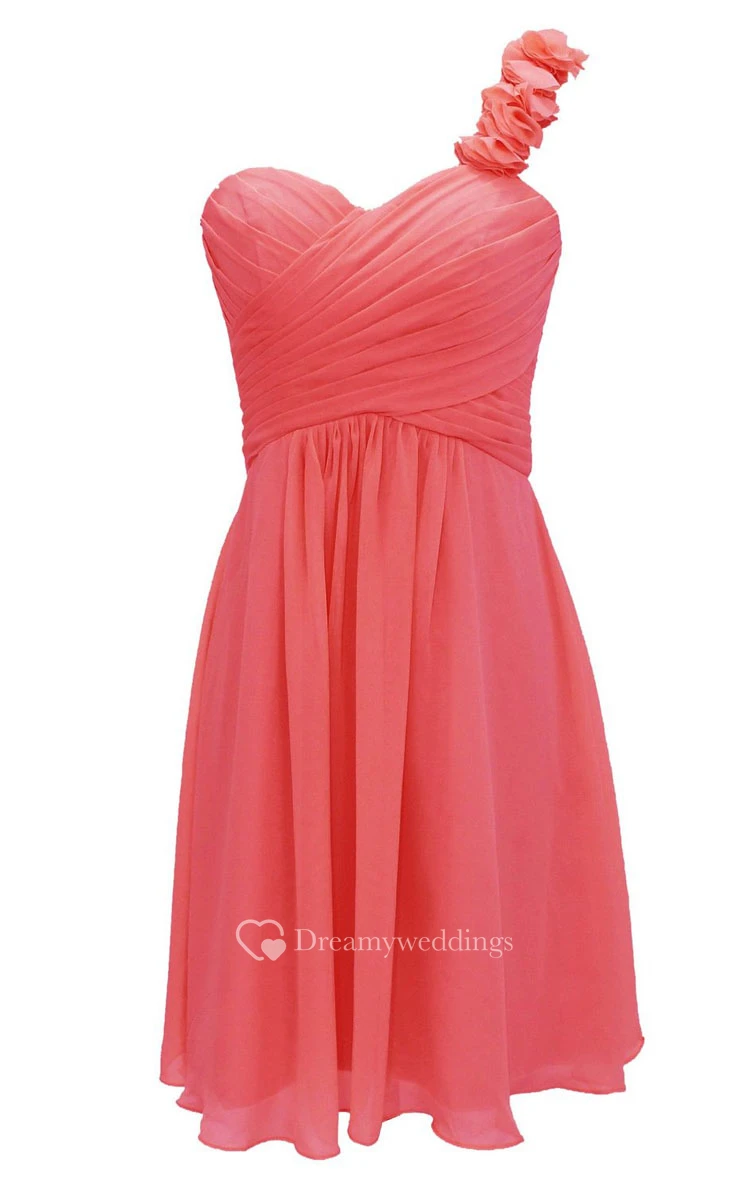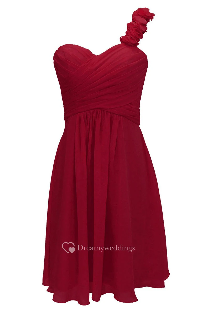 Floral One-shoulder Pleated Short Dress With Lace-up Back
