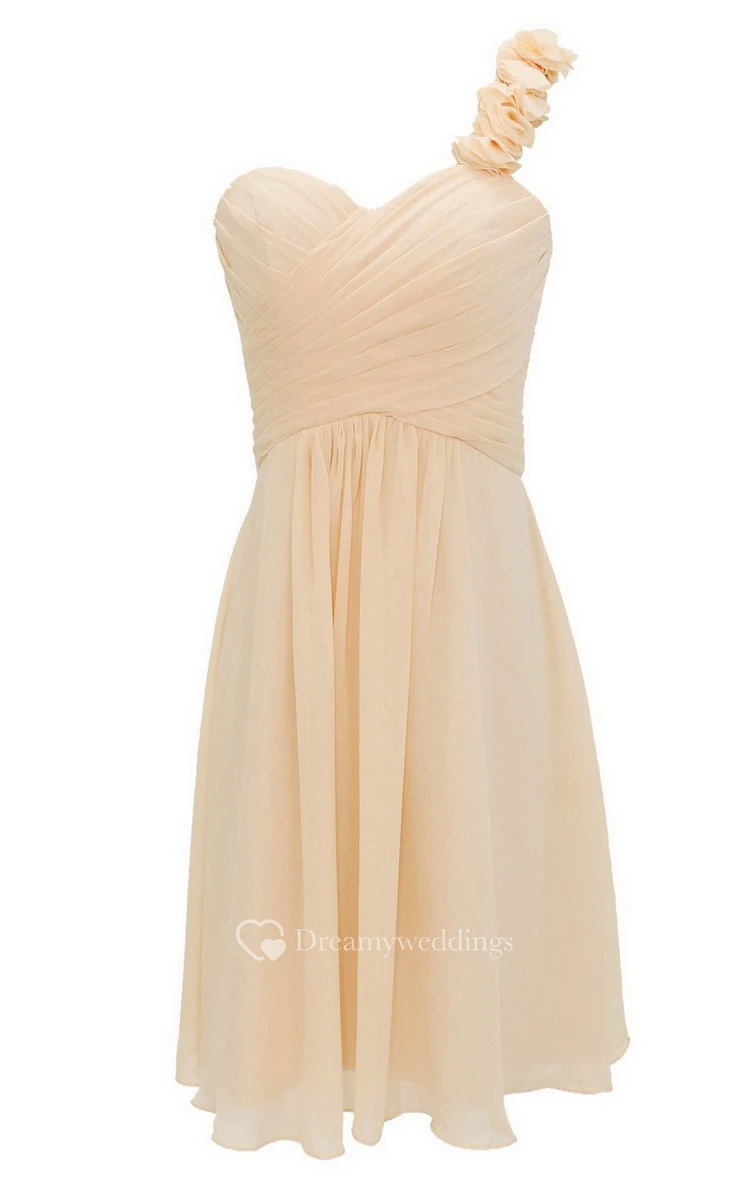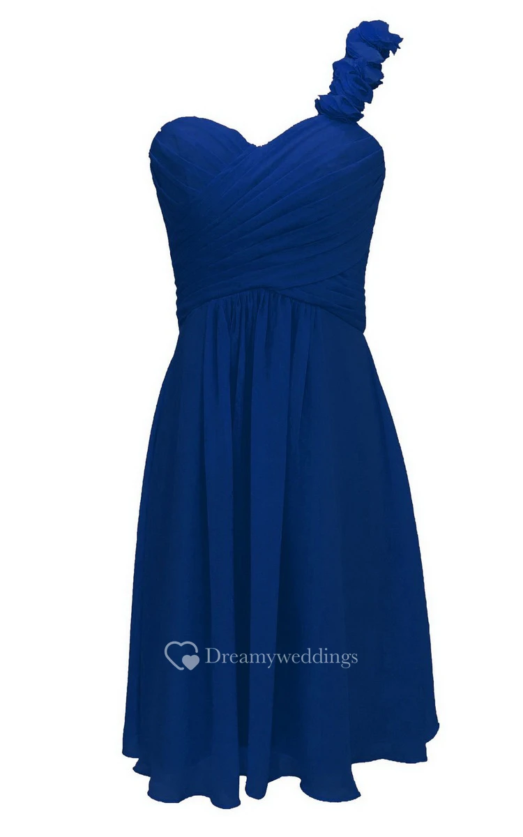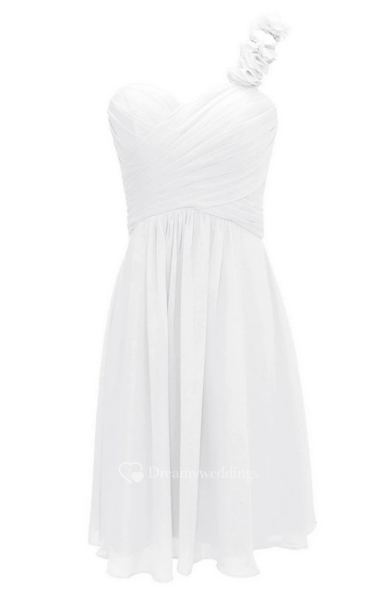 Floral One-shoulder Ruched Short Dress With Lace-up Back