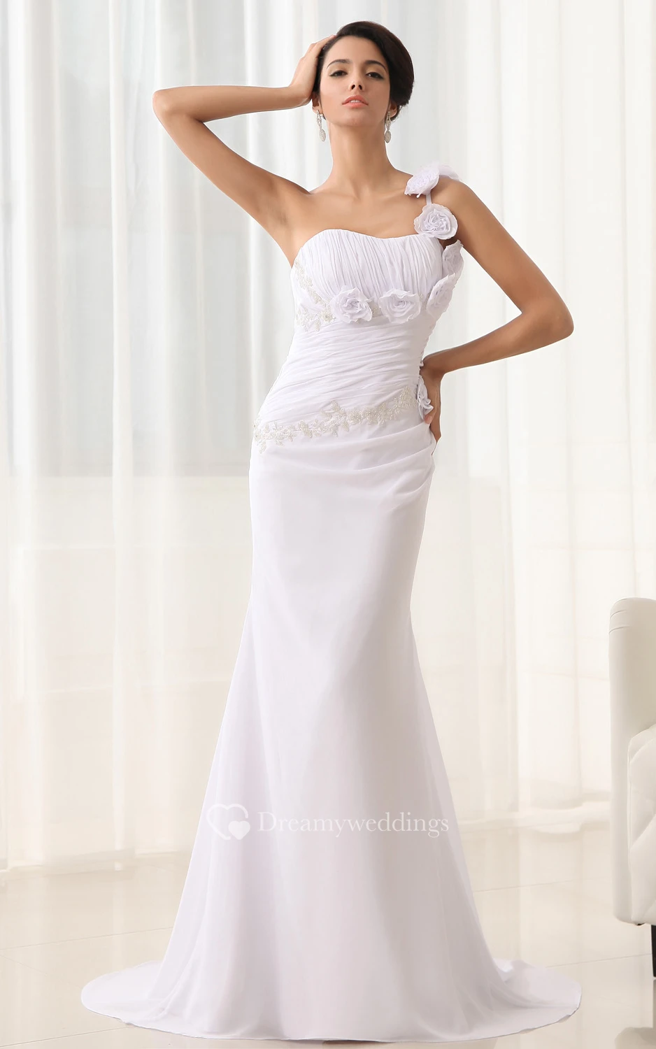 Flower Strap Sweetheart Sheath Dress With Brush Train