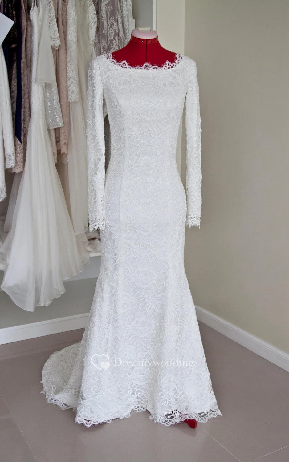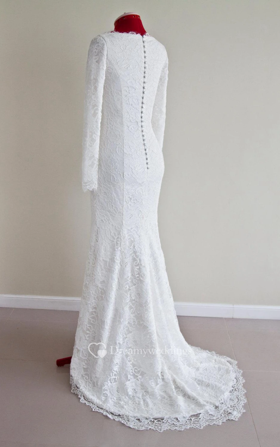 Lace Bateau Neck Long Sleeve Mermaid Wedding Dress With Buttoned Back