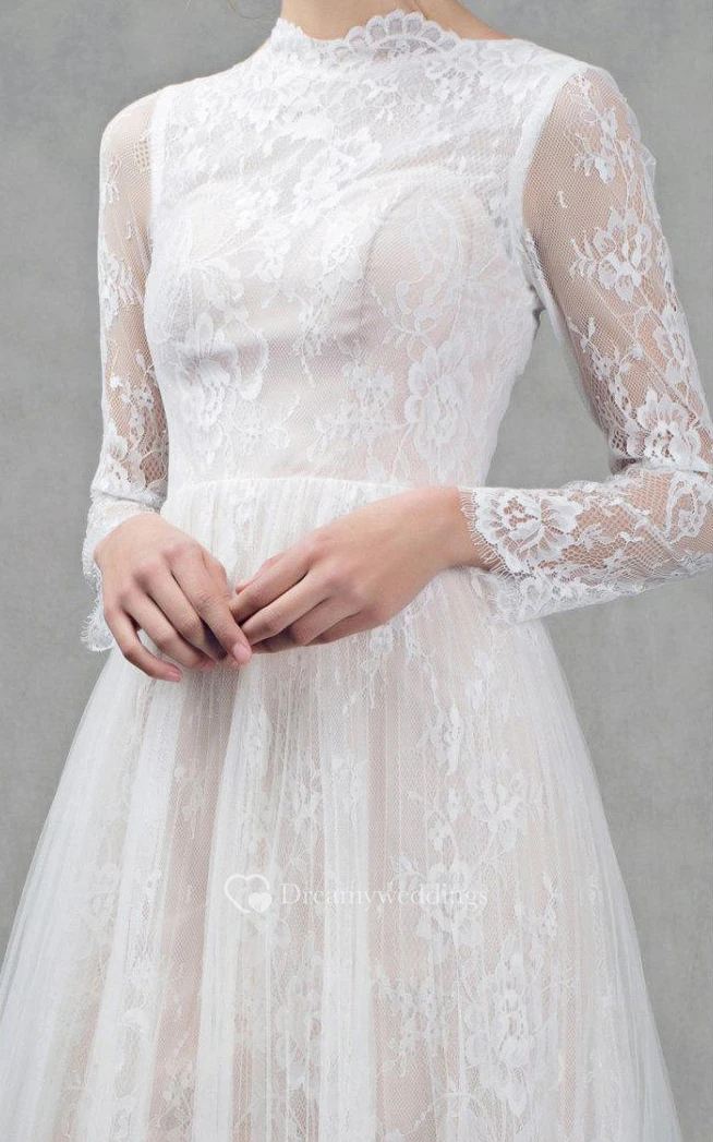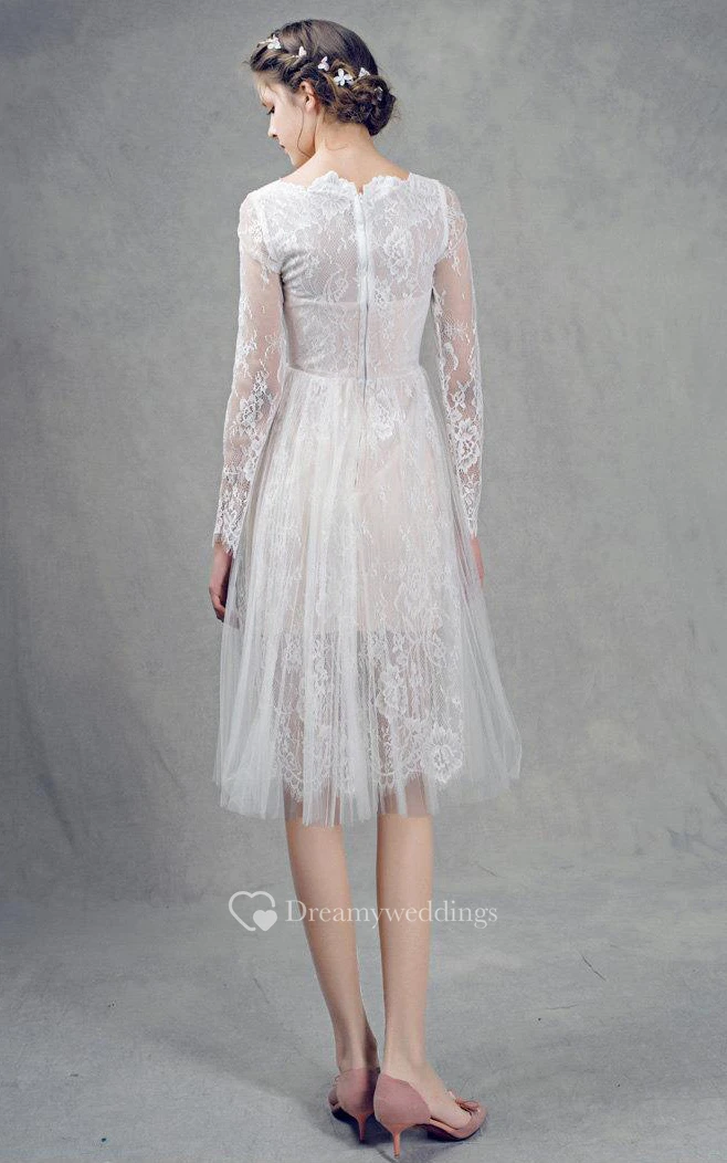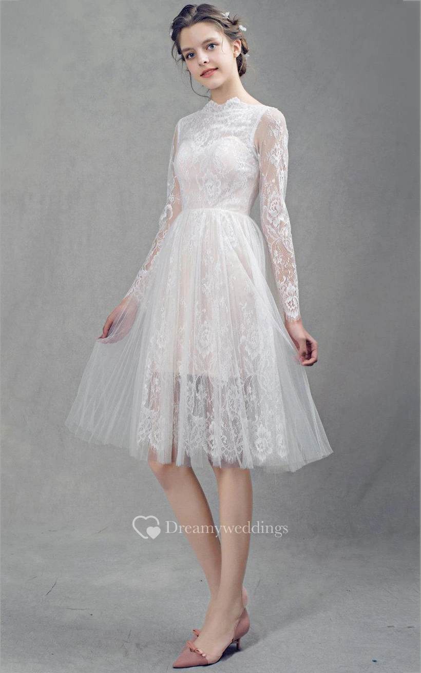 French Lace Short Tulle Wedding With Sleeves Dress