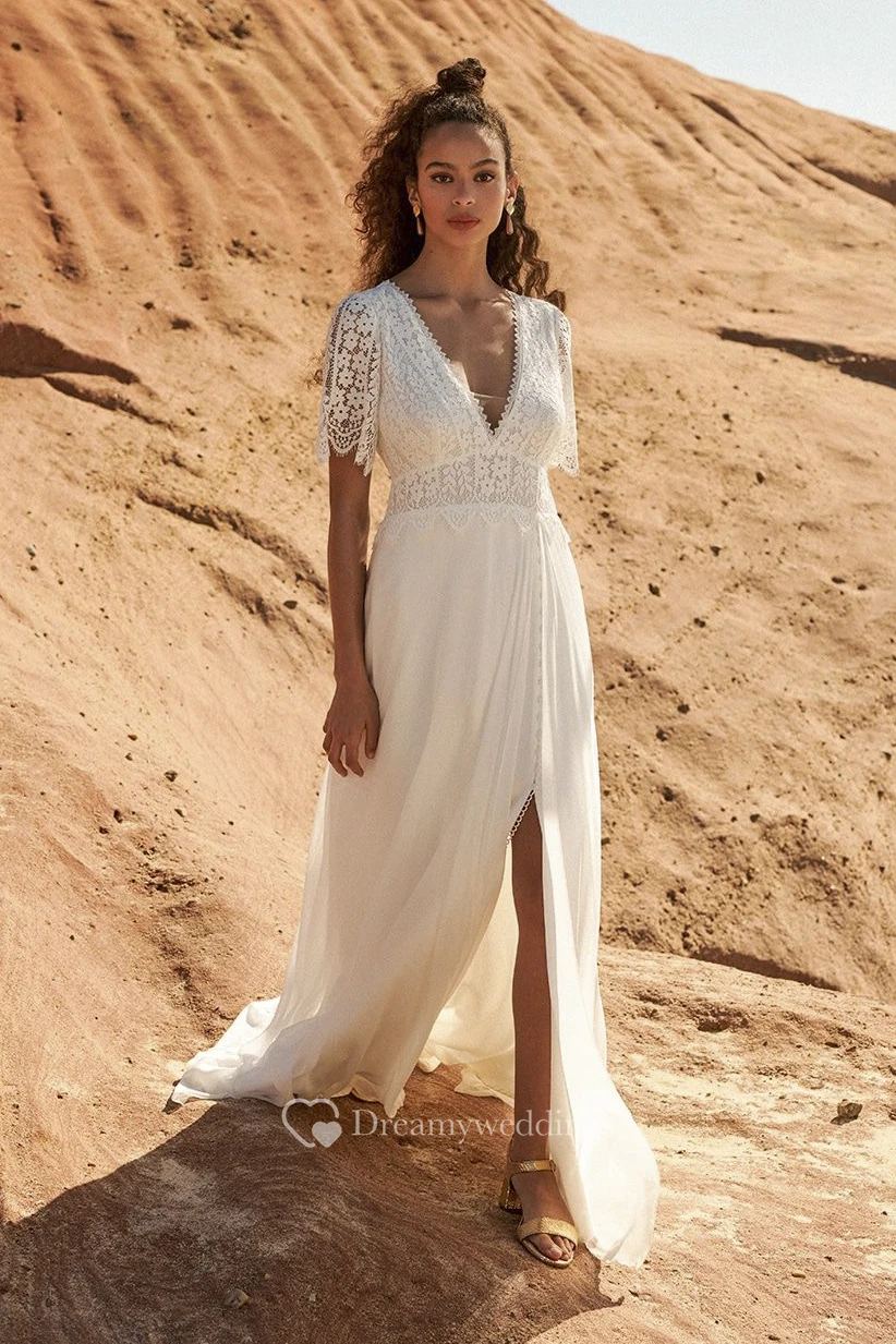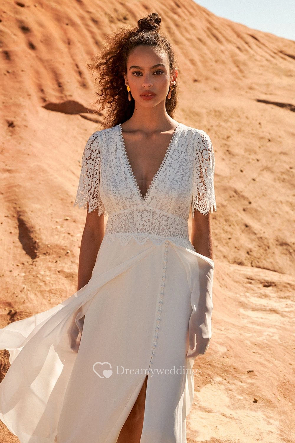 I'm so in love with this wedding dress! I was nervous to order a dress for such an important day online but I got no regrets! This dress was everything I expected: boho lace details, backless, split front. Fit for my beach wedding!