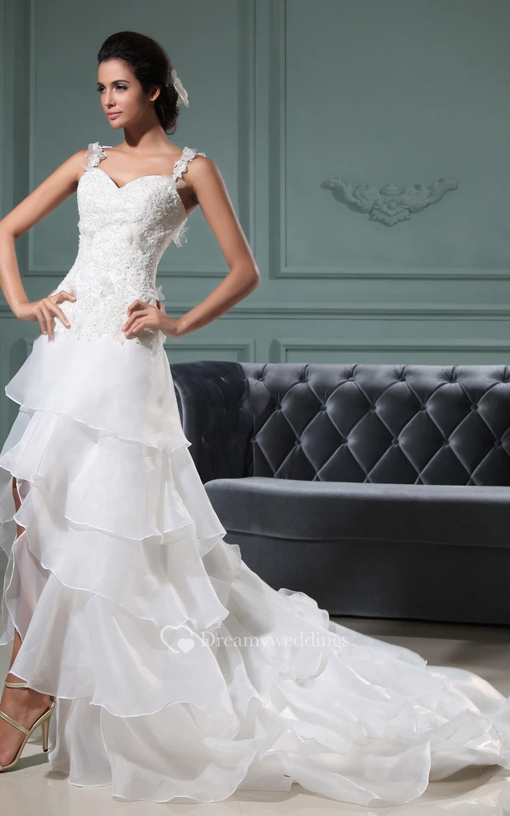Front-Split Sweetheart Dress With Ruffles and Spaghetti Straps