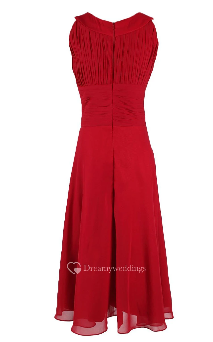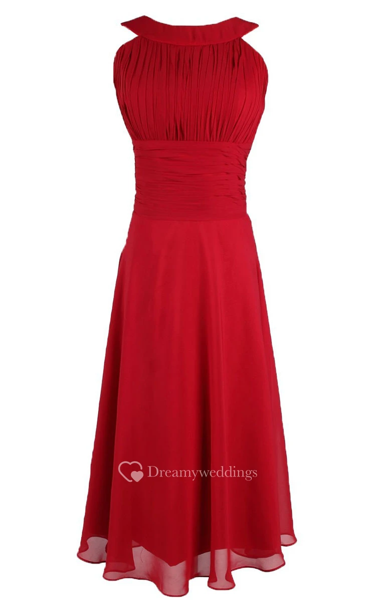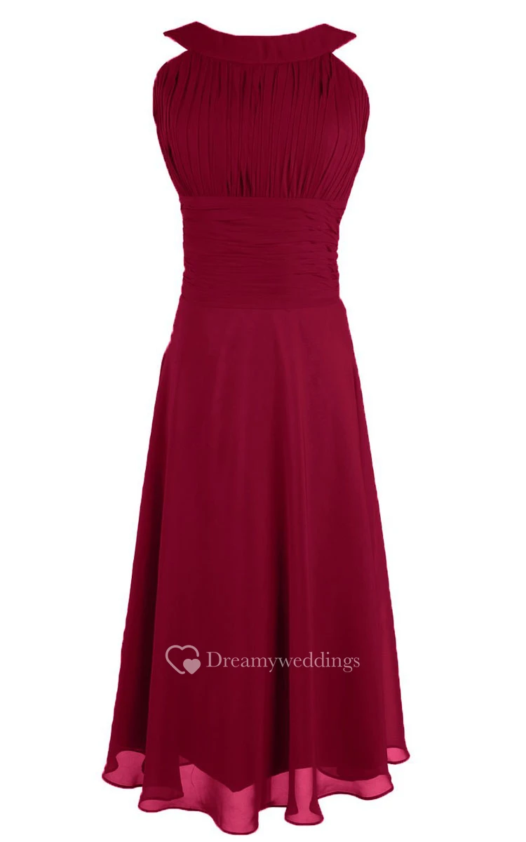 Full Length Sleeveless Pleated Dress With Ruched Waist