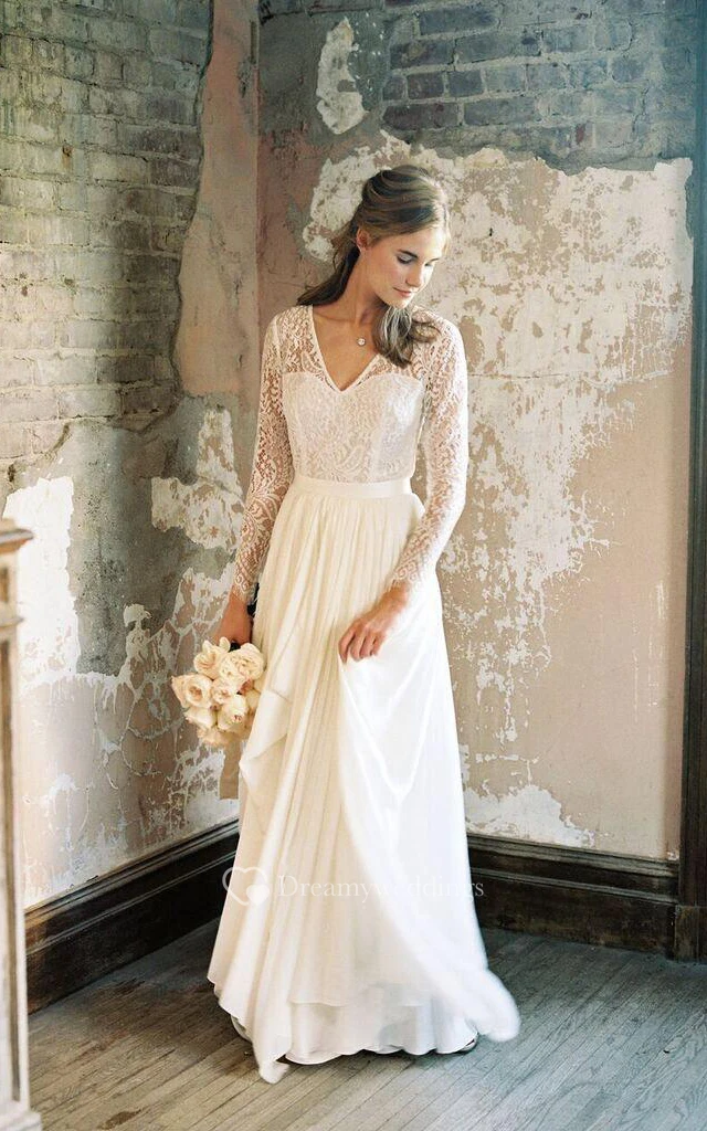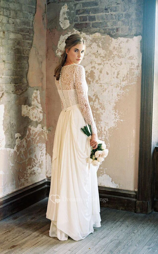 V-Neck Illusion Long Sleeve Dress With Draping And Illusion Back