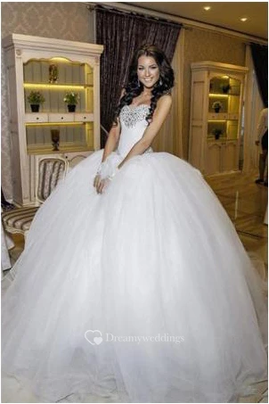 Glamorous Ball Gown Tulle Wedding Dress Crystals White Court Train