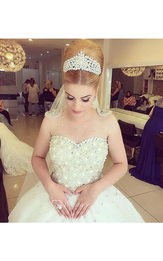 Glamorous Beading Tulle Wedding Dress Ball Gown Floor-length