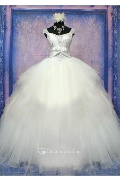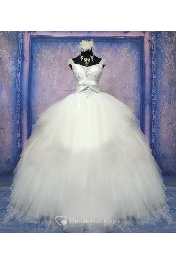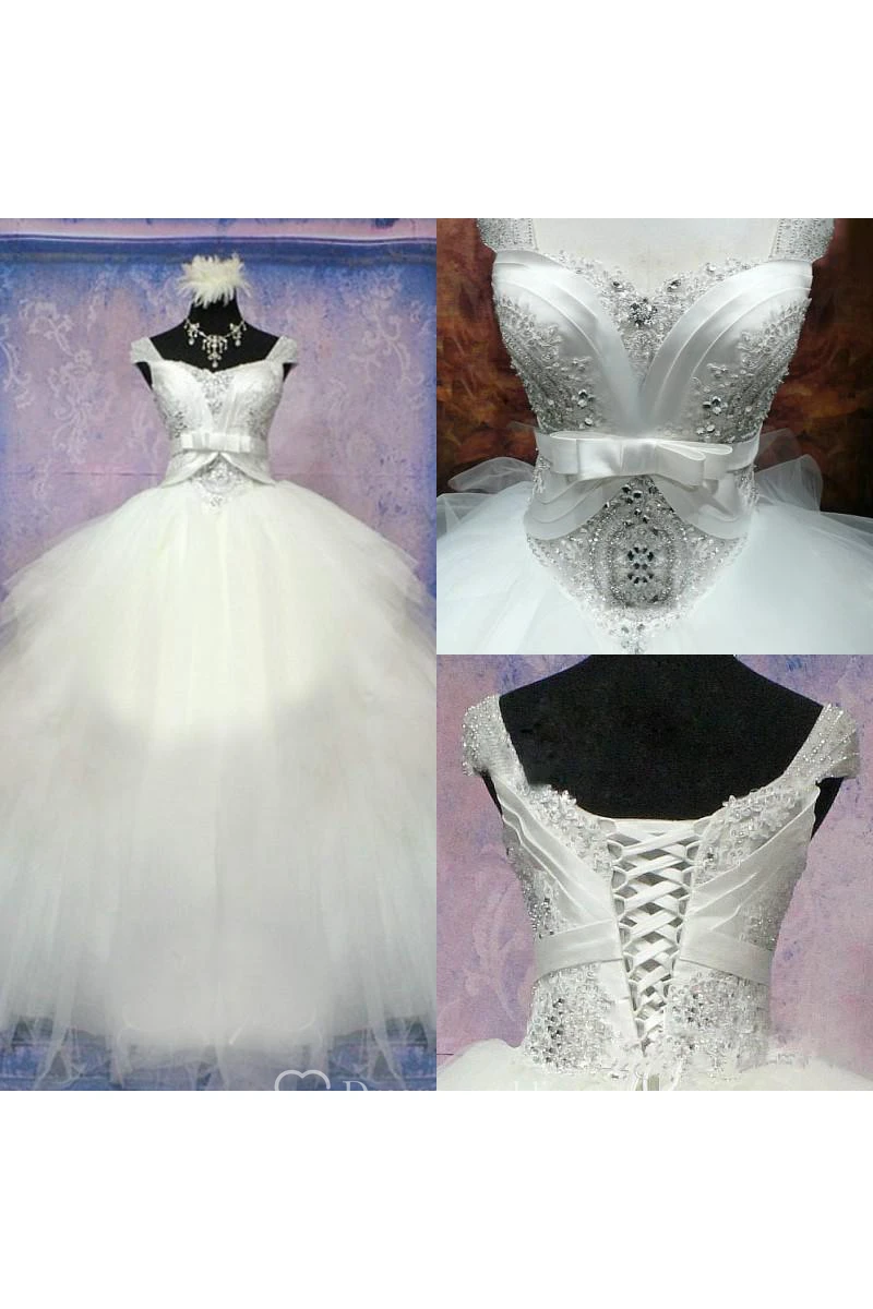 Glamorous Beadings Crystals Ball Gown Wedding Dress Bowknot Lace-up