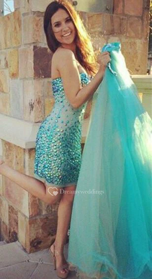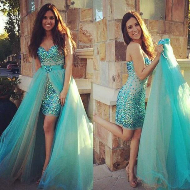 Glamorous Beadings Detachable Evening Dress Tulle Court Train