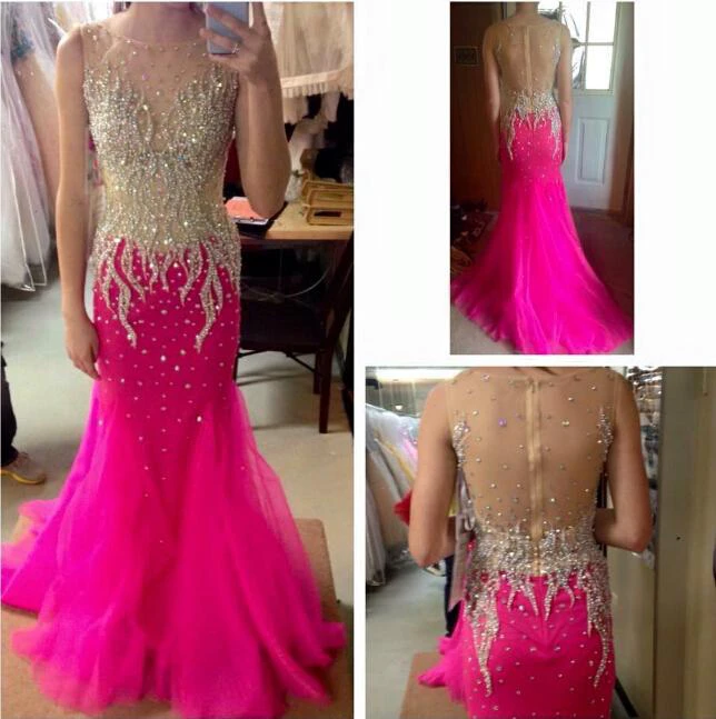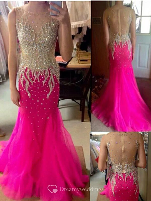 Glamorous Beadings Mermaid Evening Dress Zipper Sweep Train