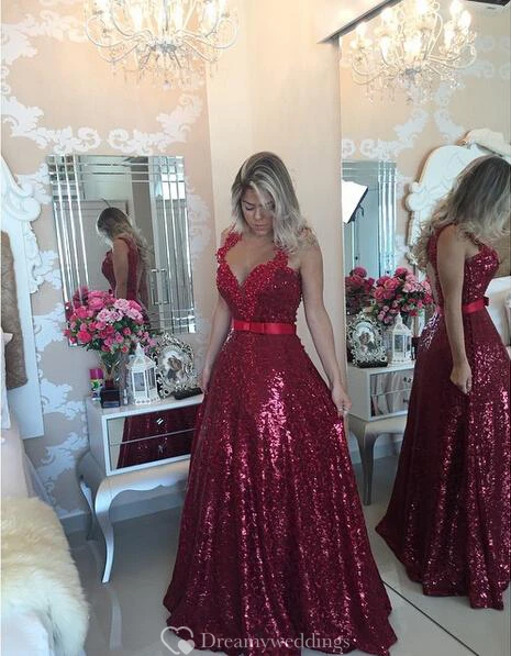 Glamorous Lace Appliques A-line Prom Dress Sequins Beadings