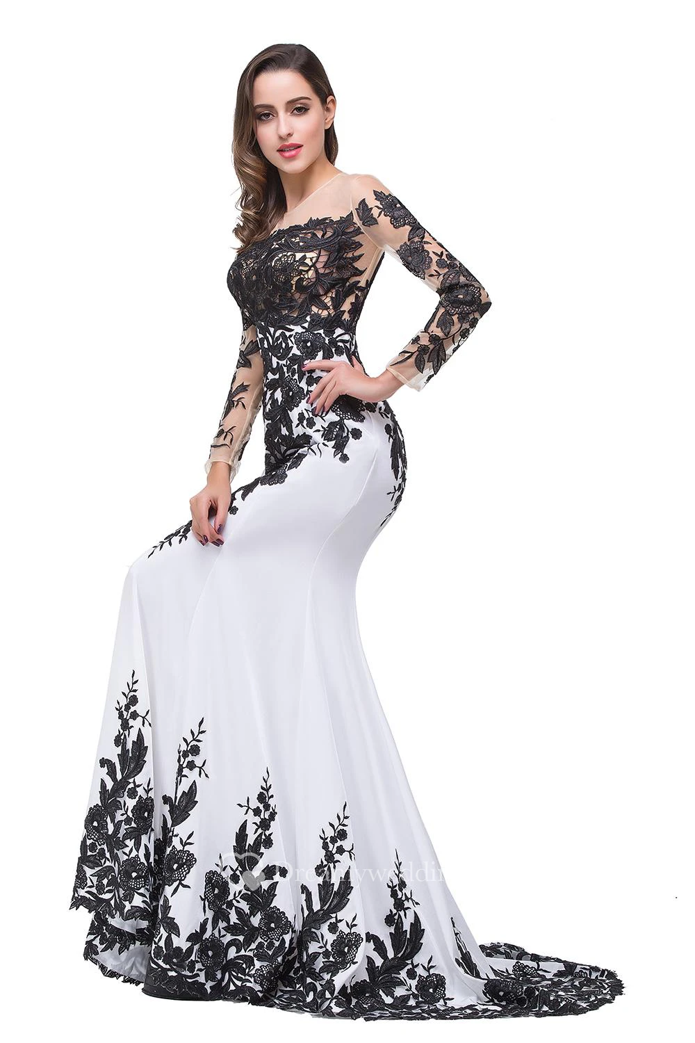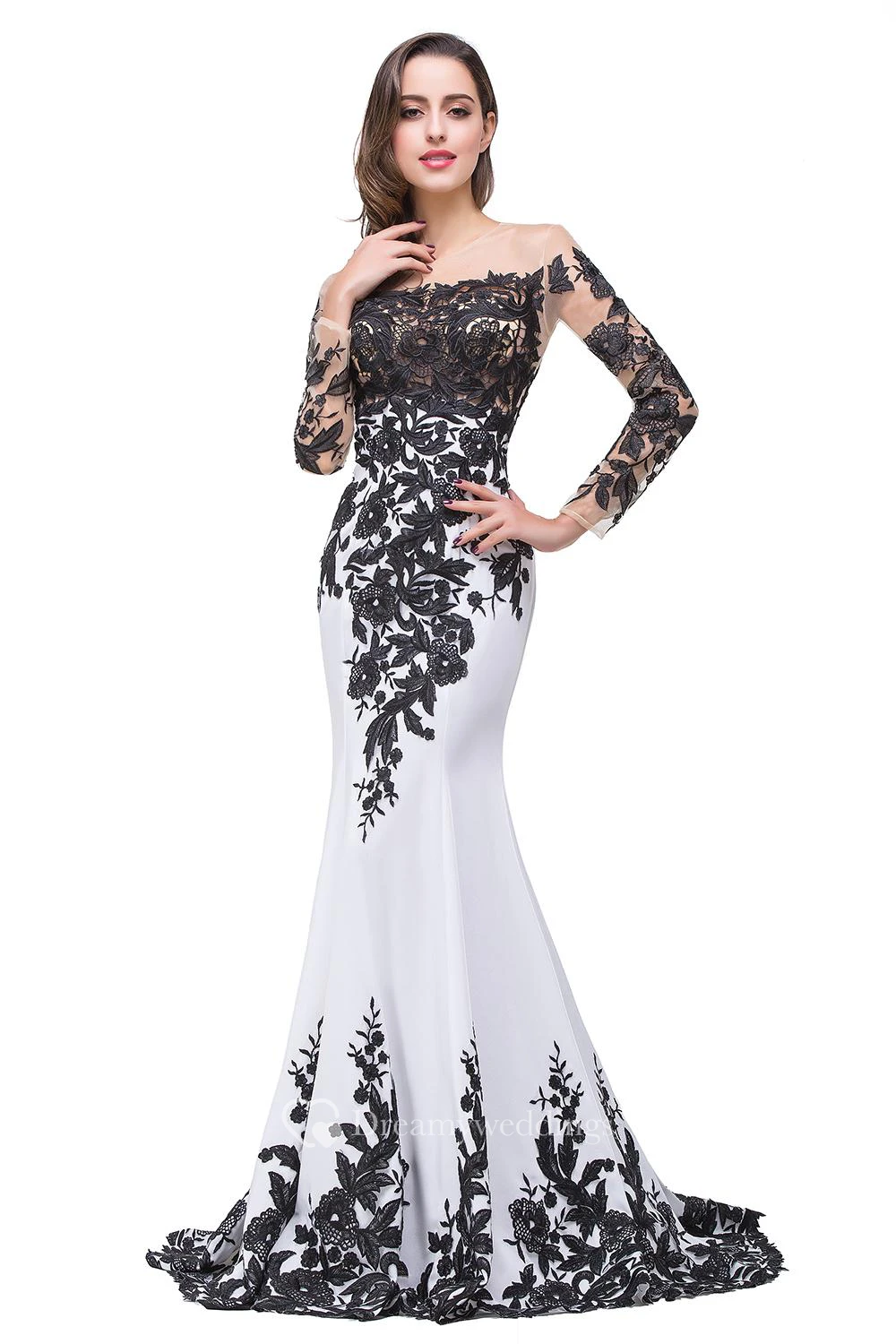 Glamorous Long Sleeve Mermaid Evening Dress Black Appliques Mother Dress