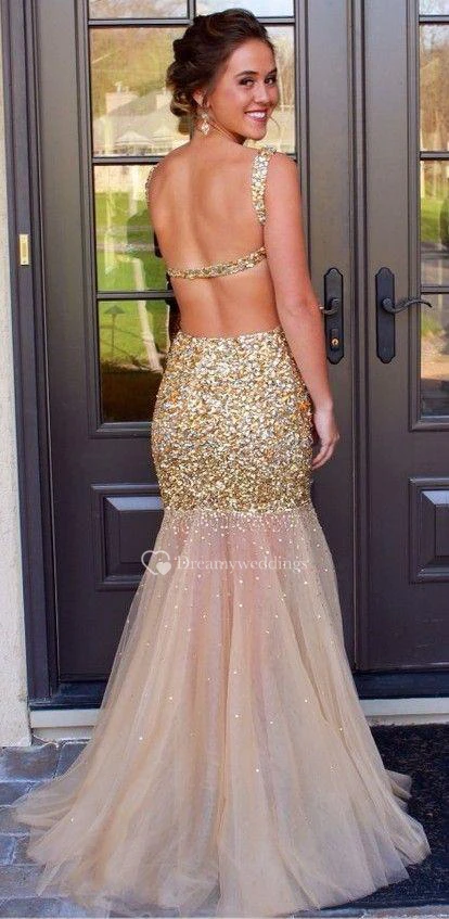 Glamorous Sleeveless Crystal Prom Dresses Mermaid Backless Tulle Evening Dress