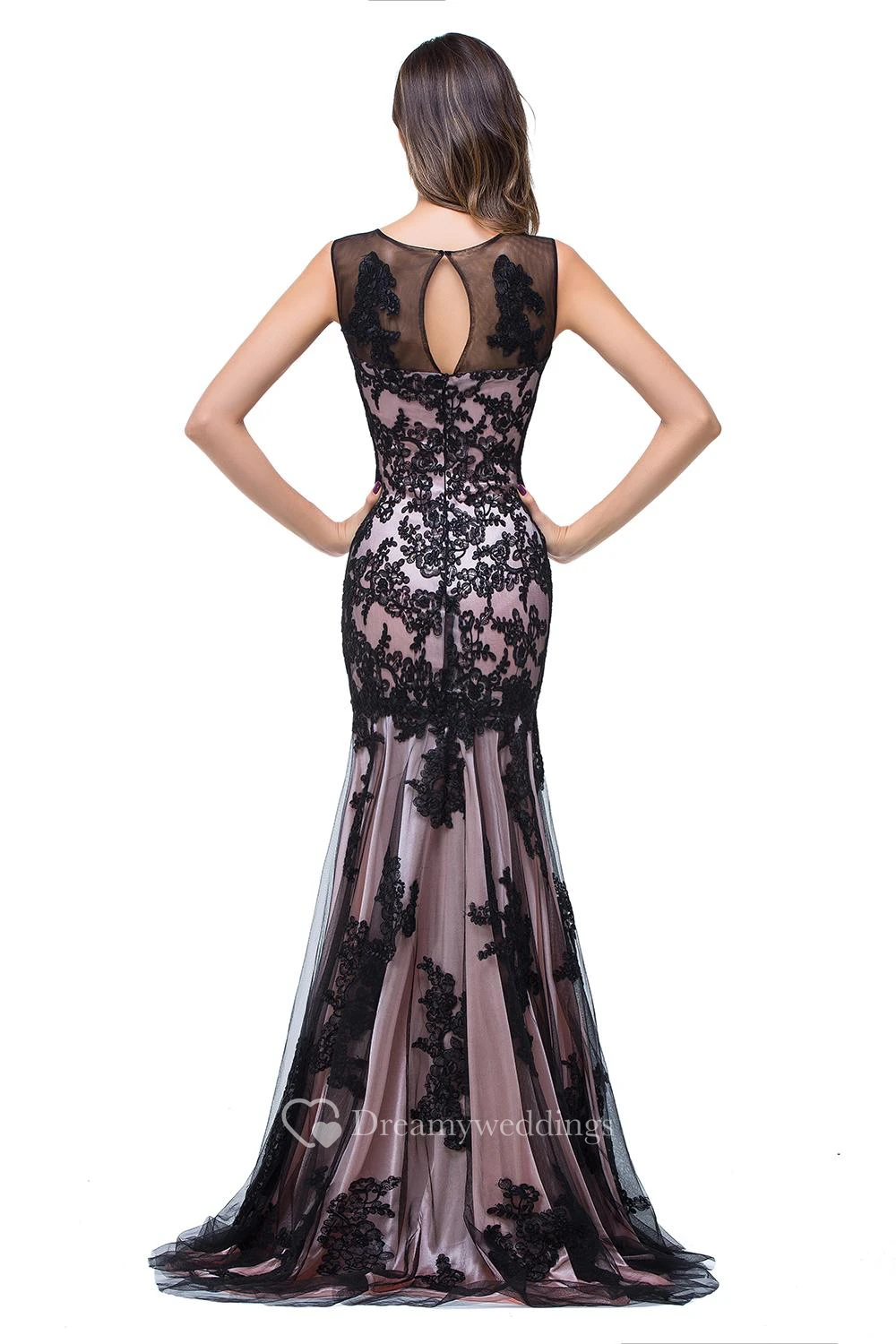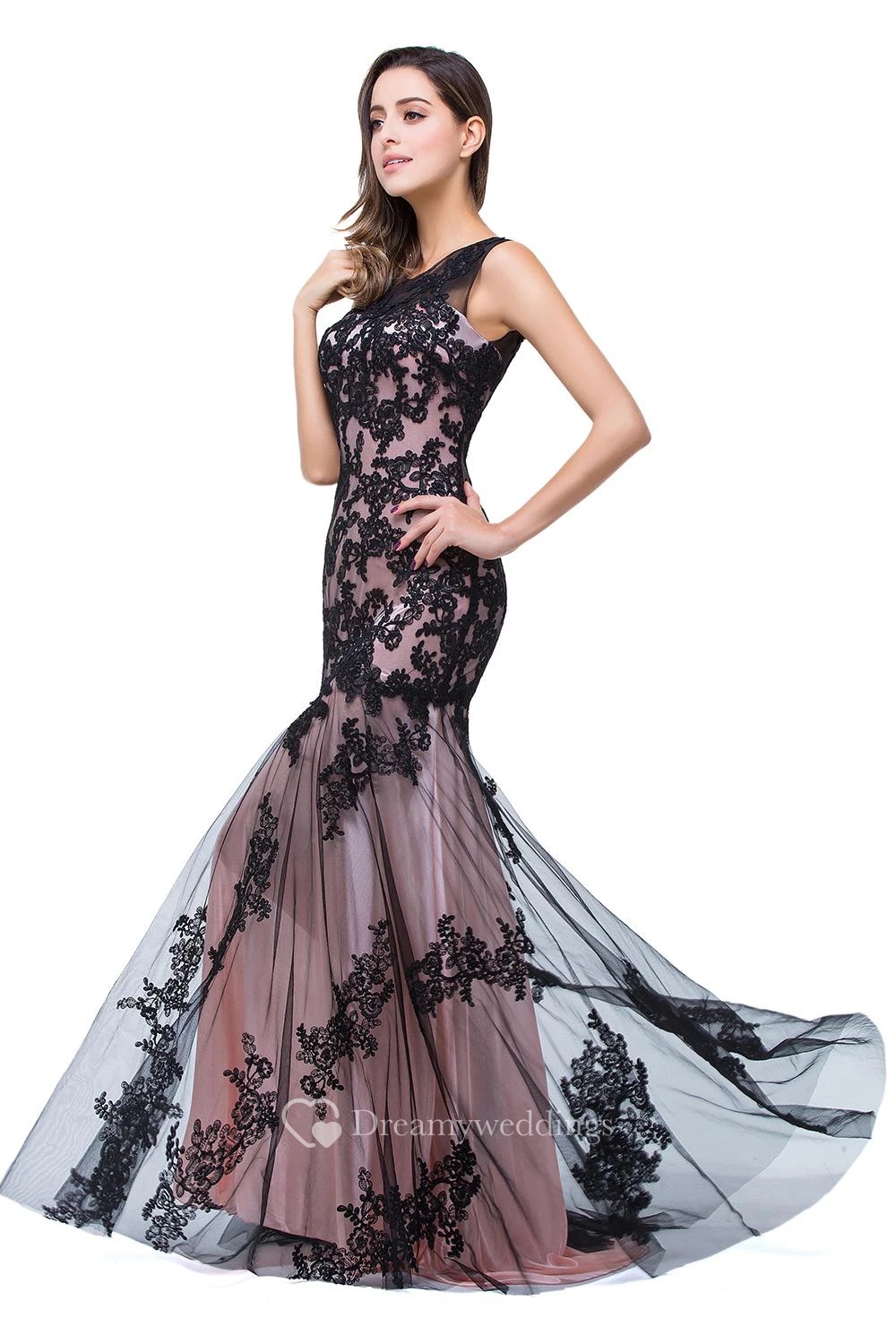 Glamorous Sleeveless Lace Mermaid Evening Dress Tulle Long Prom Gown