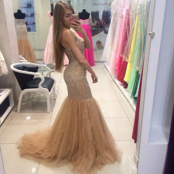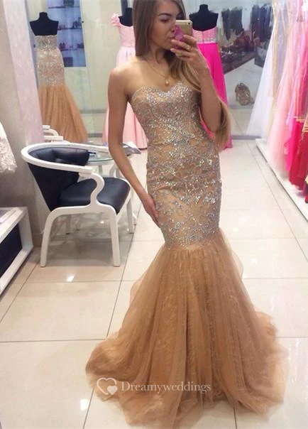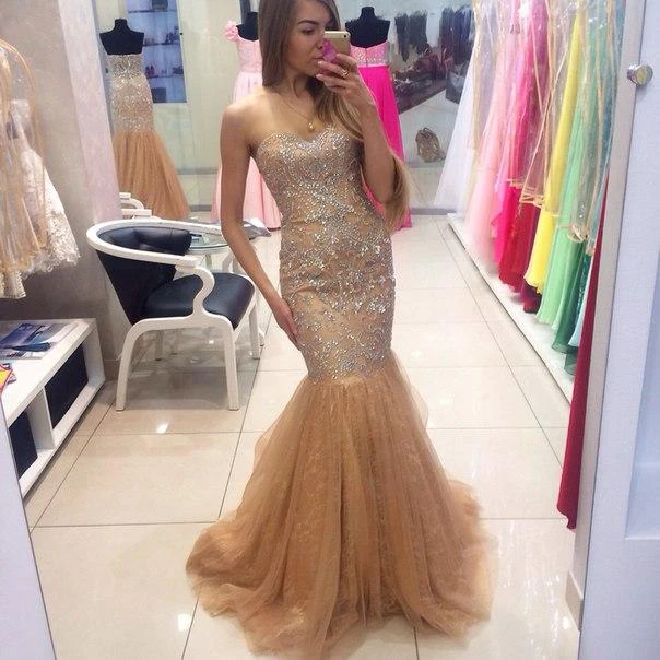 Glamorous Sweetheart Beadings Mermaid Evening Dresses Tulle Zipper Back