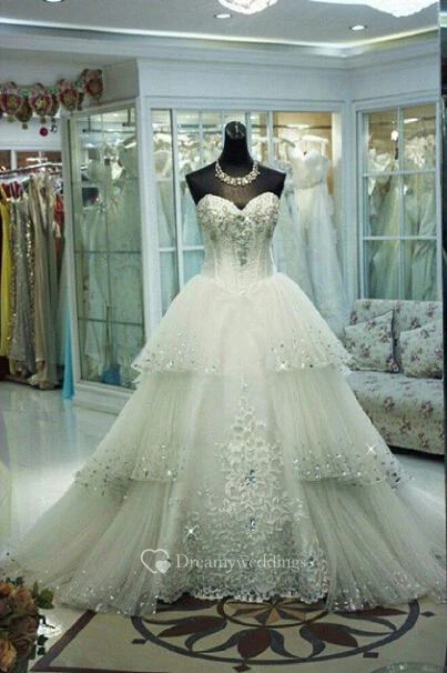 Glamorous Three Layers Tulle Wedding Dress Sequins Beadings