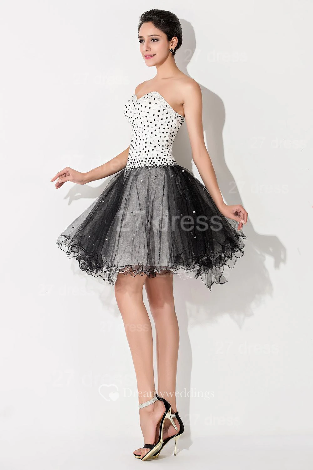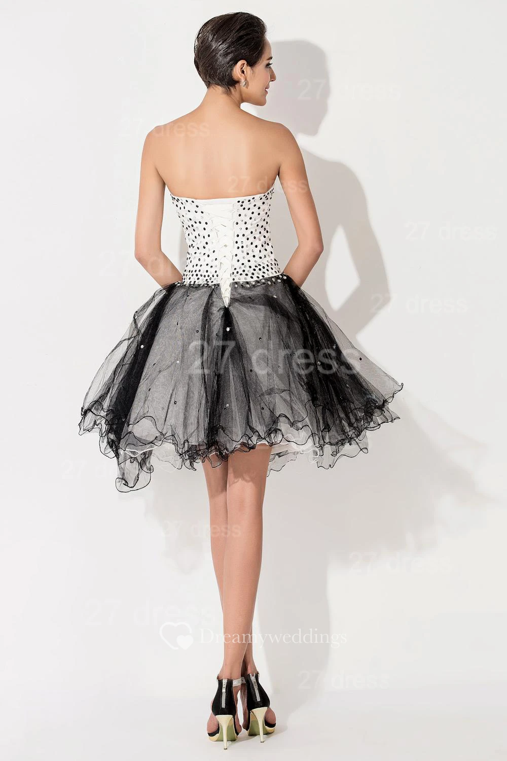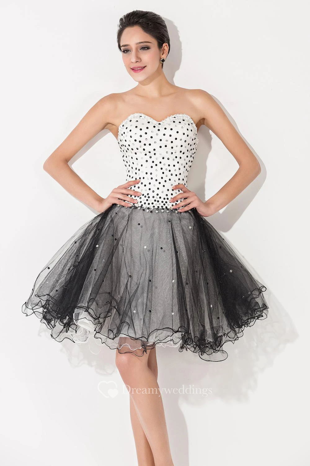 Glamorous Tulle Black and White Homecoming Dress Sweetheart Sleeveless With Beadings