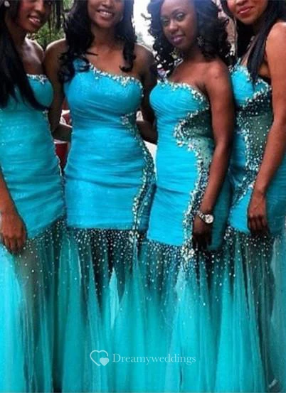 Glamorous Tulle Mermaid Bridesmaid Dress Sequins One Shoulder