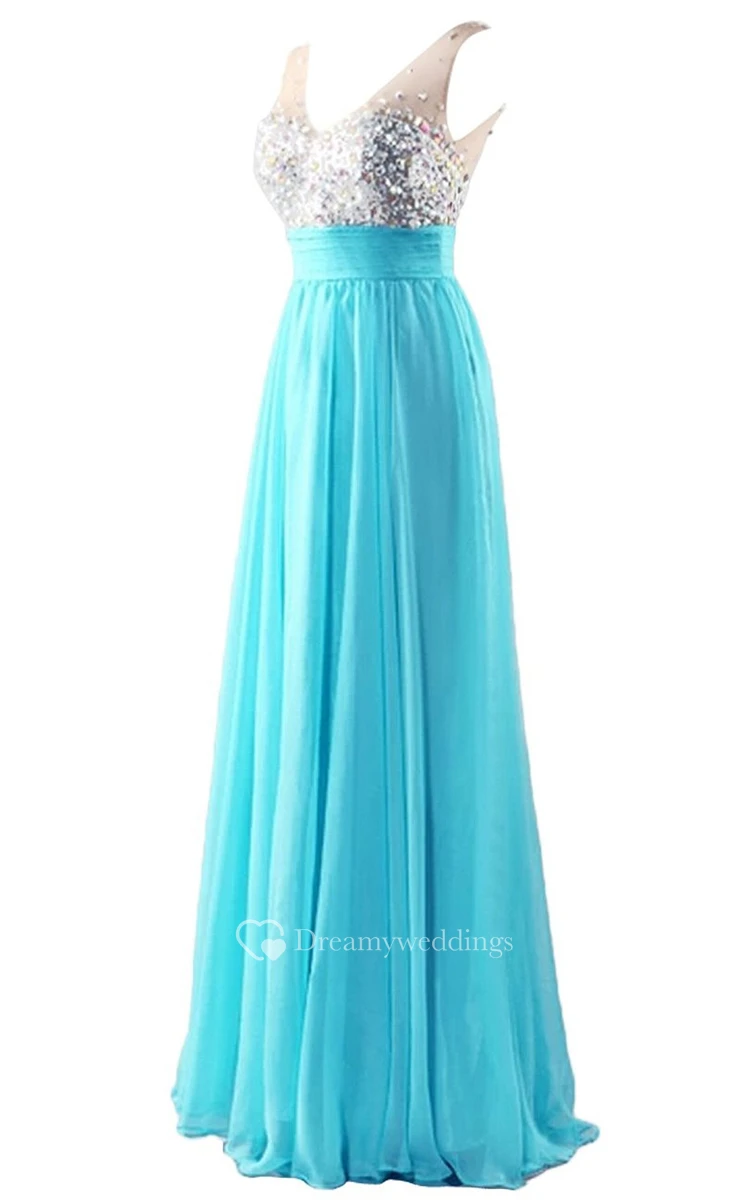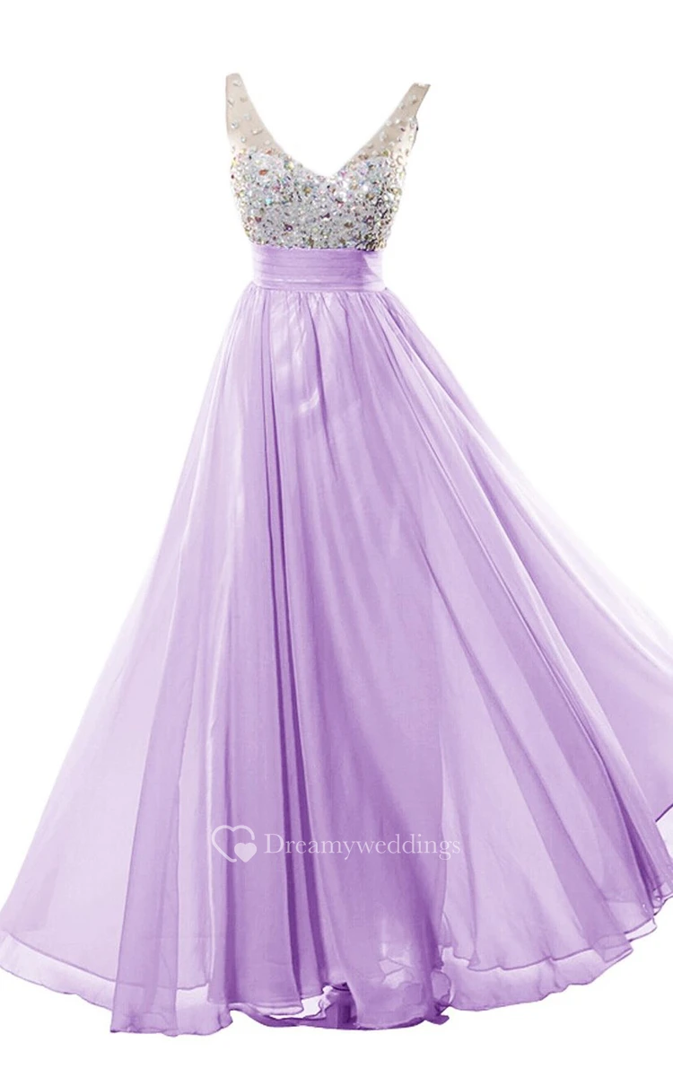 Glamrous V-neck Crystal-beaded Chiffon A-line Gown
