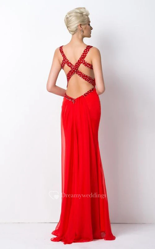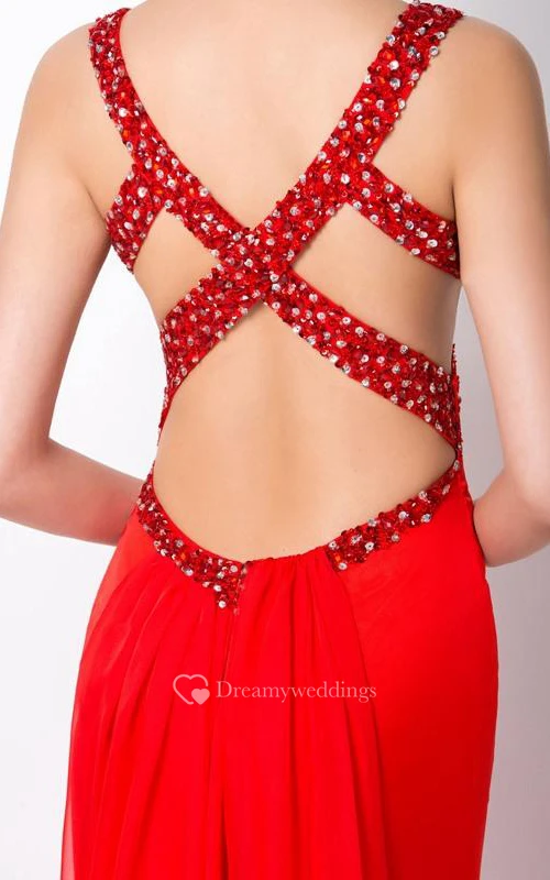 Glimmering A-Line Straps Beaded Long Prom Dress