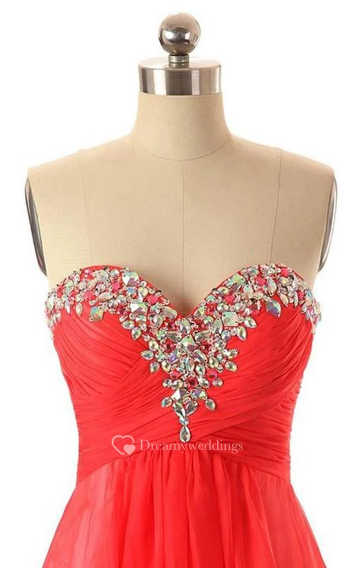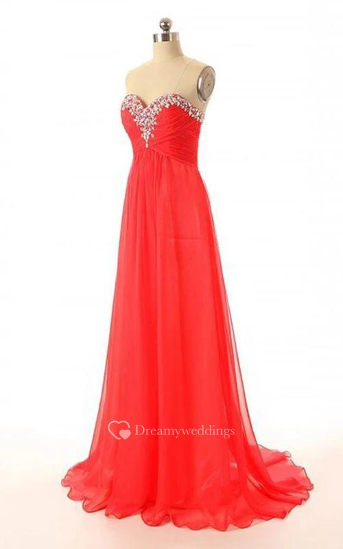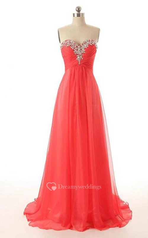 Glimmering Sweetheart Ruched Beaded Floor-Length Prom Dress