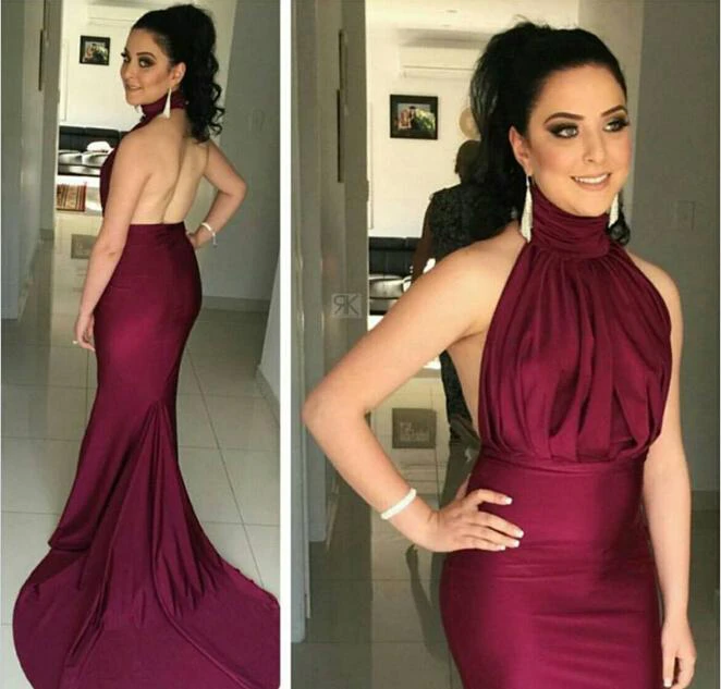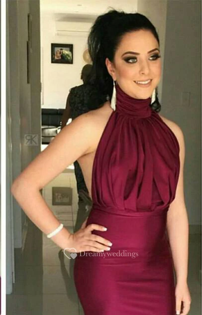 Glitz High-Neck Burgundy Prom Dresses Mermaid Long Party Gowns