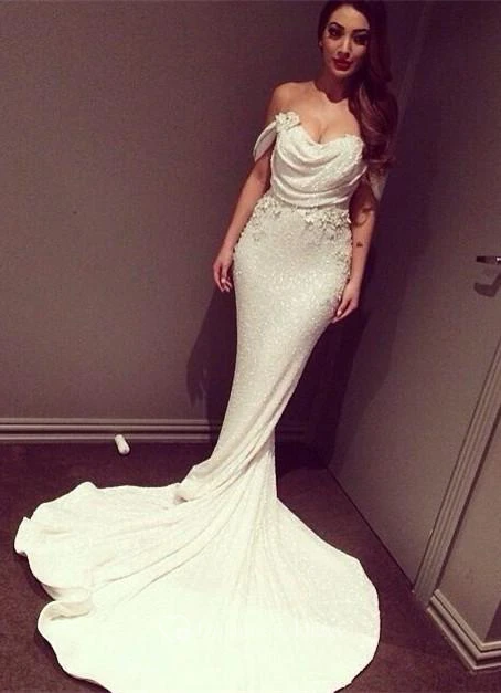Glitz Off-the-Shoulder Sequins Prom Dresses Mermaid Floor Length