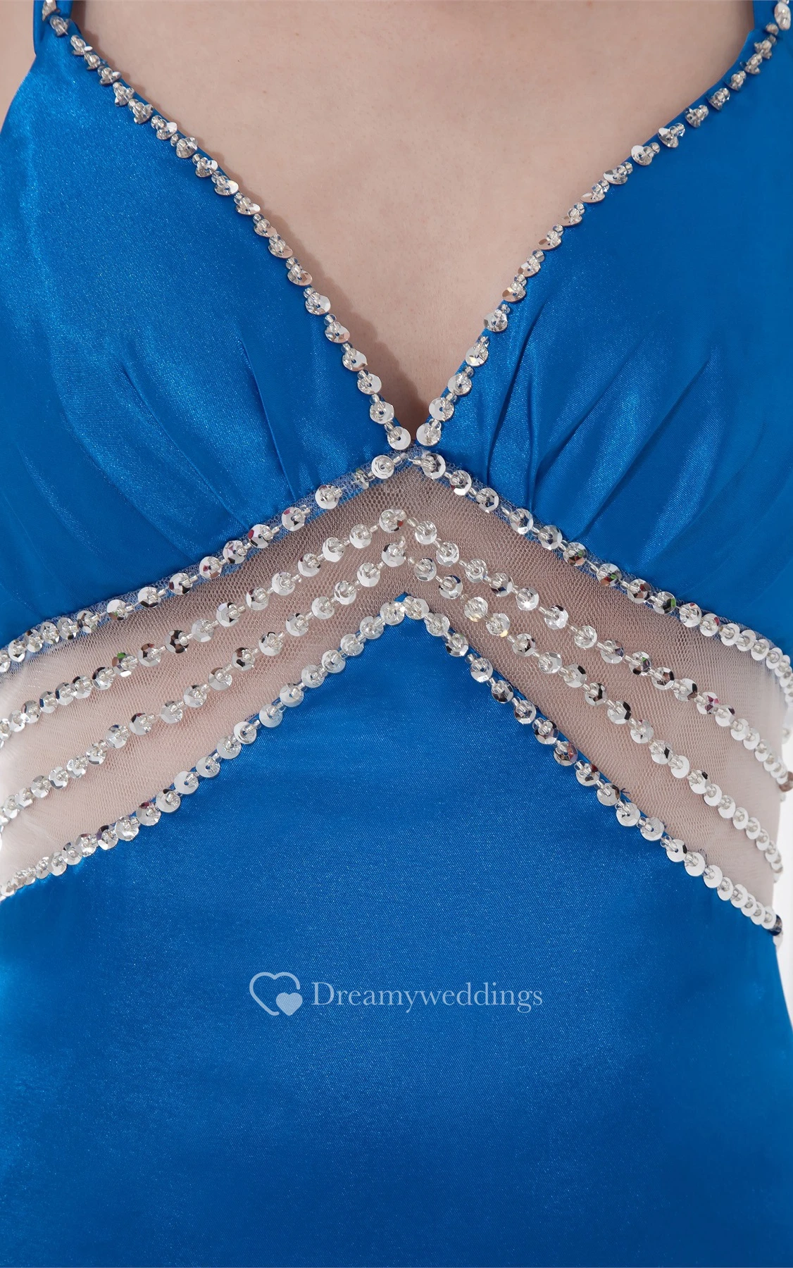 Glossy Floor-Length Sleeveless Illusion and Dress With Beading