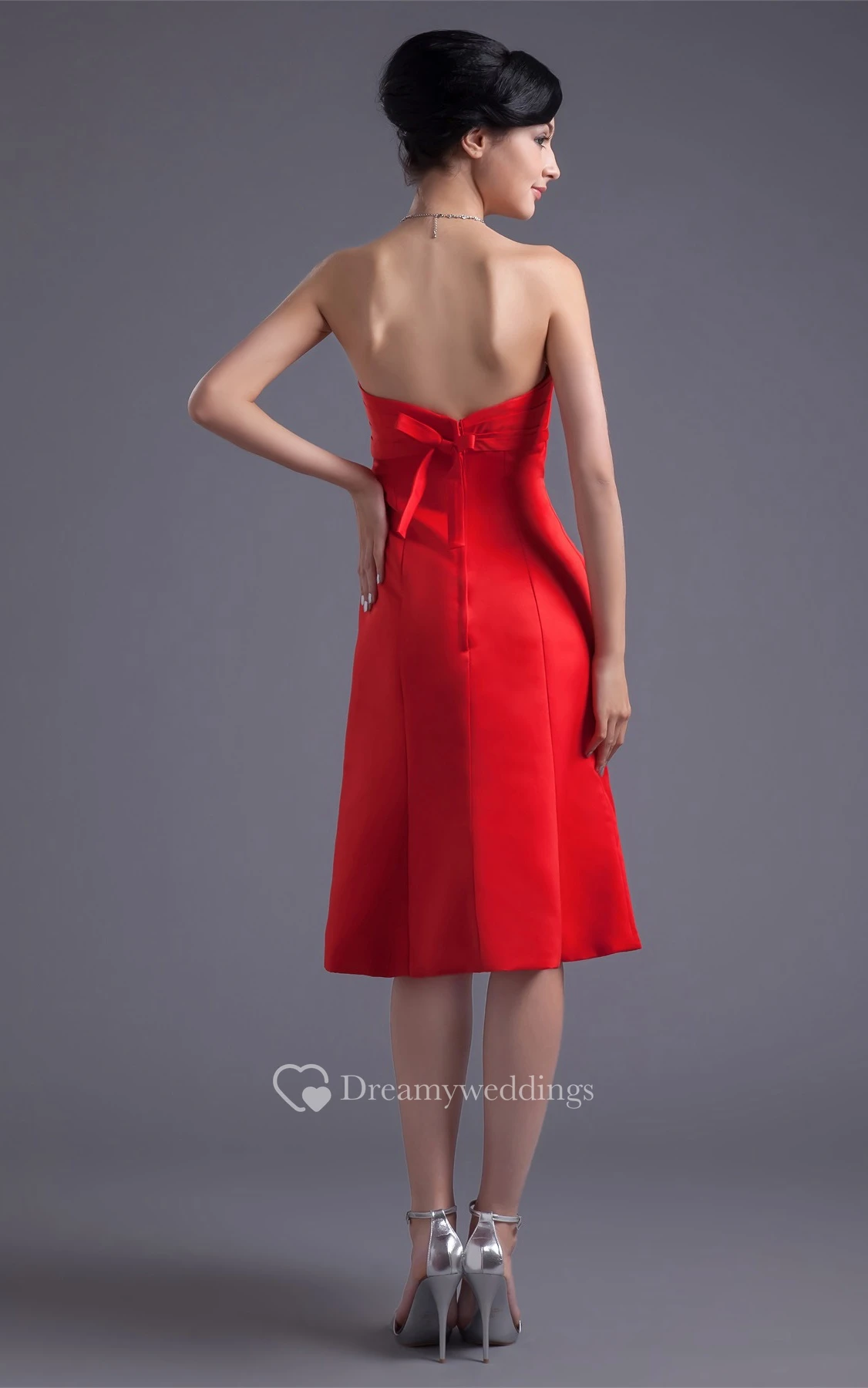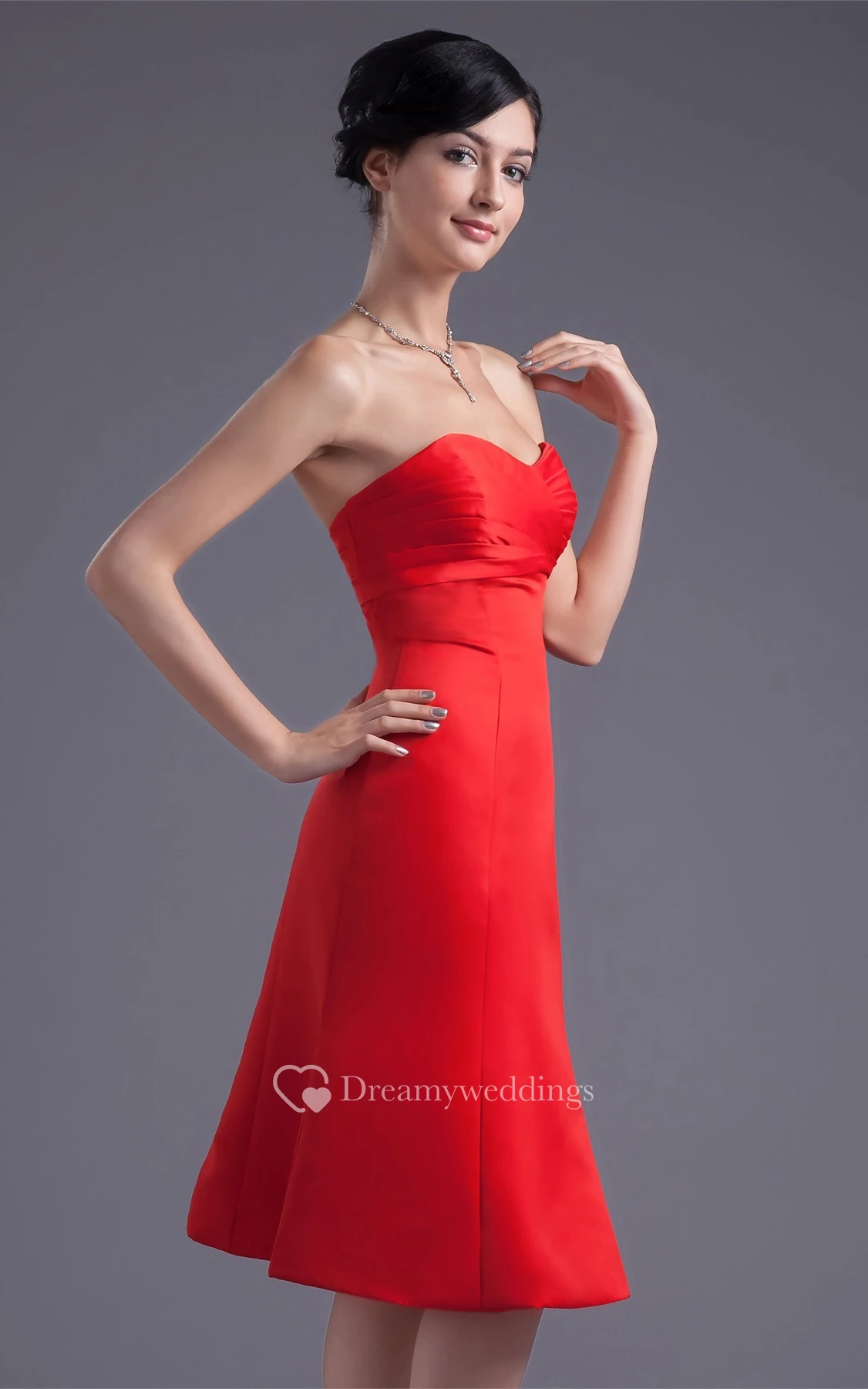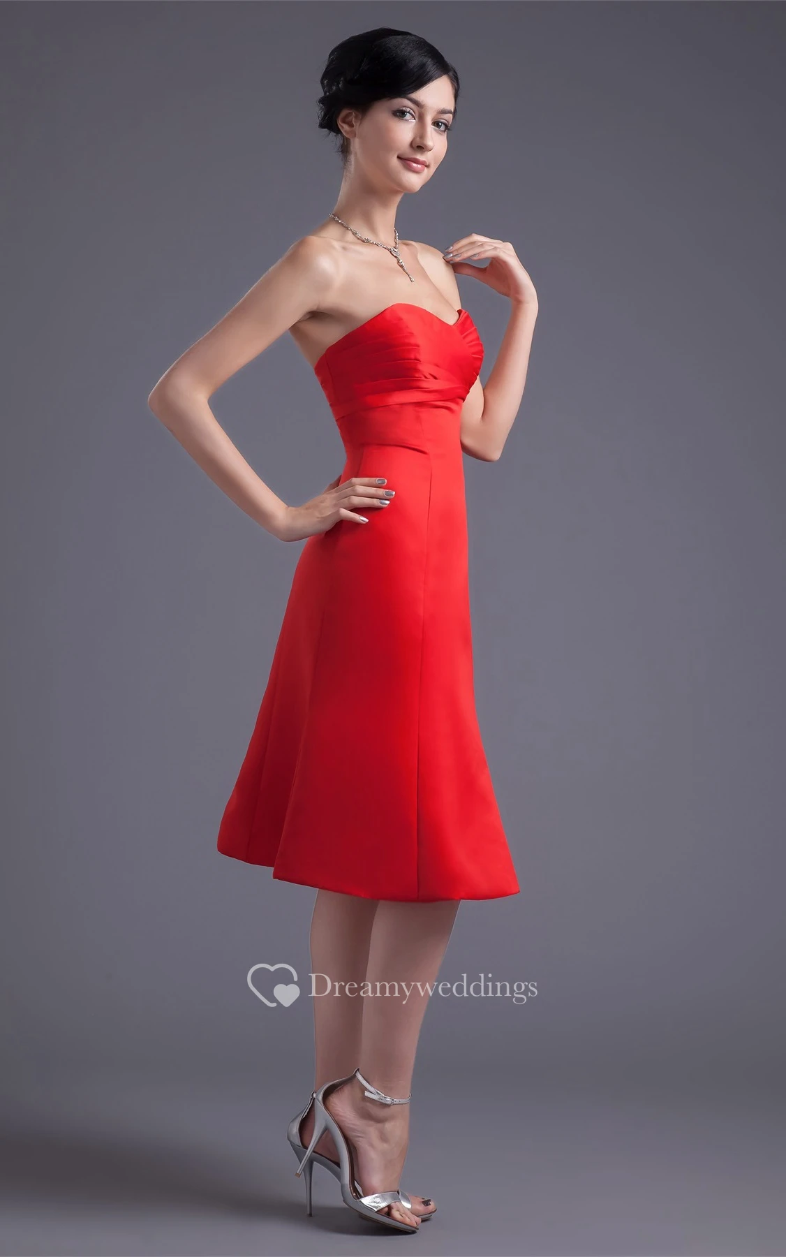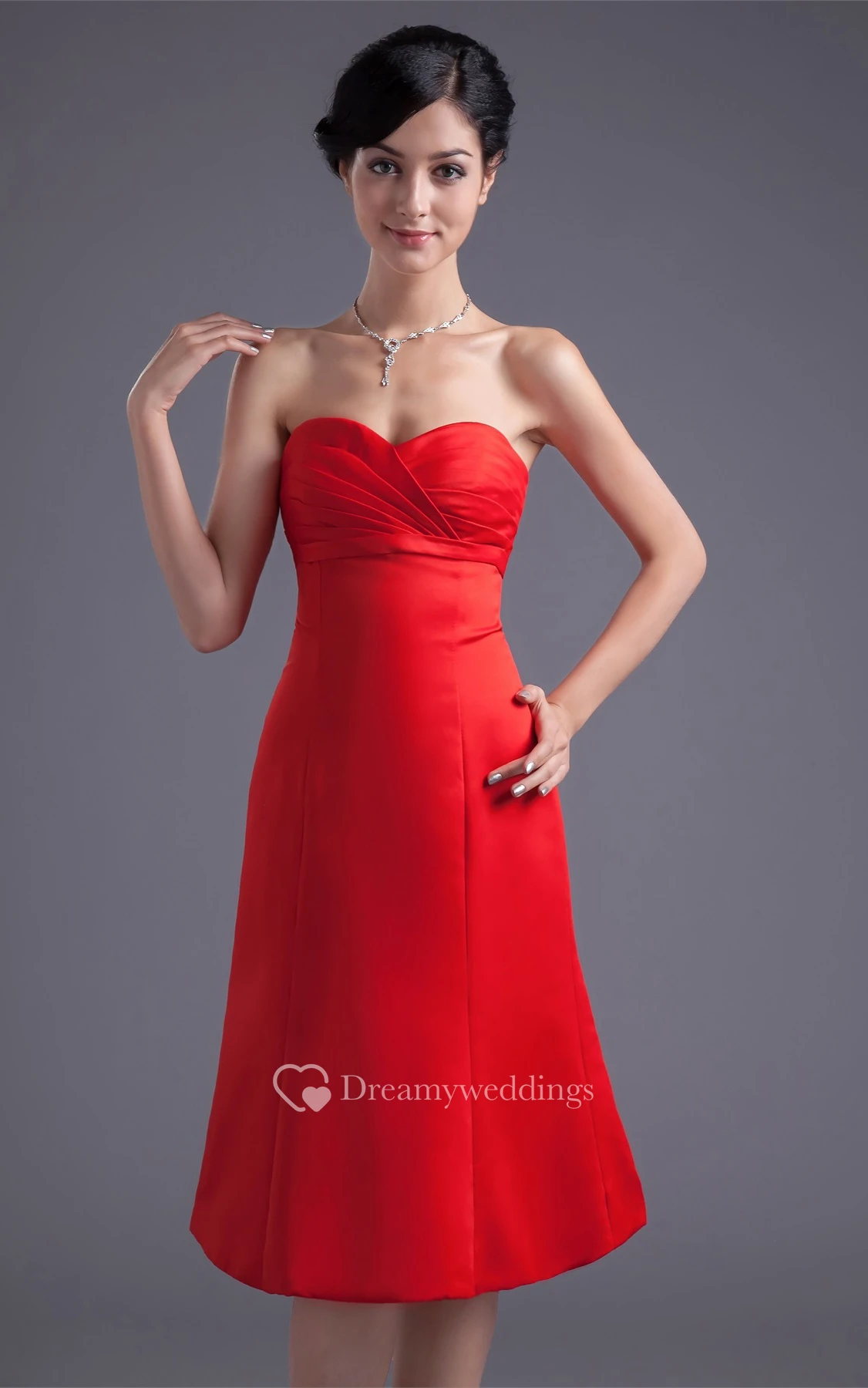Glossy Sleeveless Midi Satin a Line Sweetheart Bridesmaid Dresses