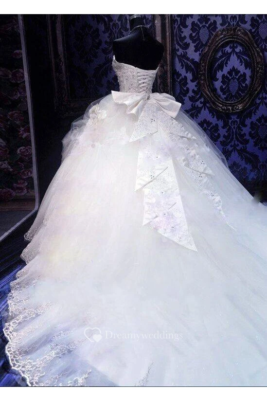 Gorgeous Ball Gown Beadings Wedding Dress Court Train Bowknot
