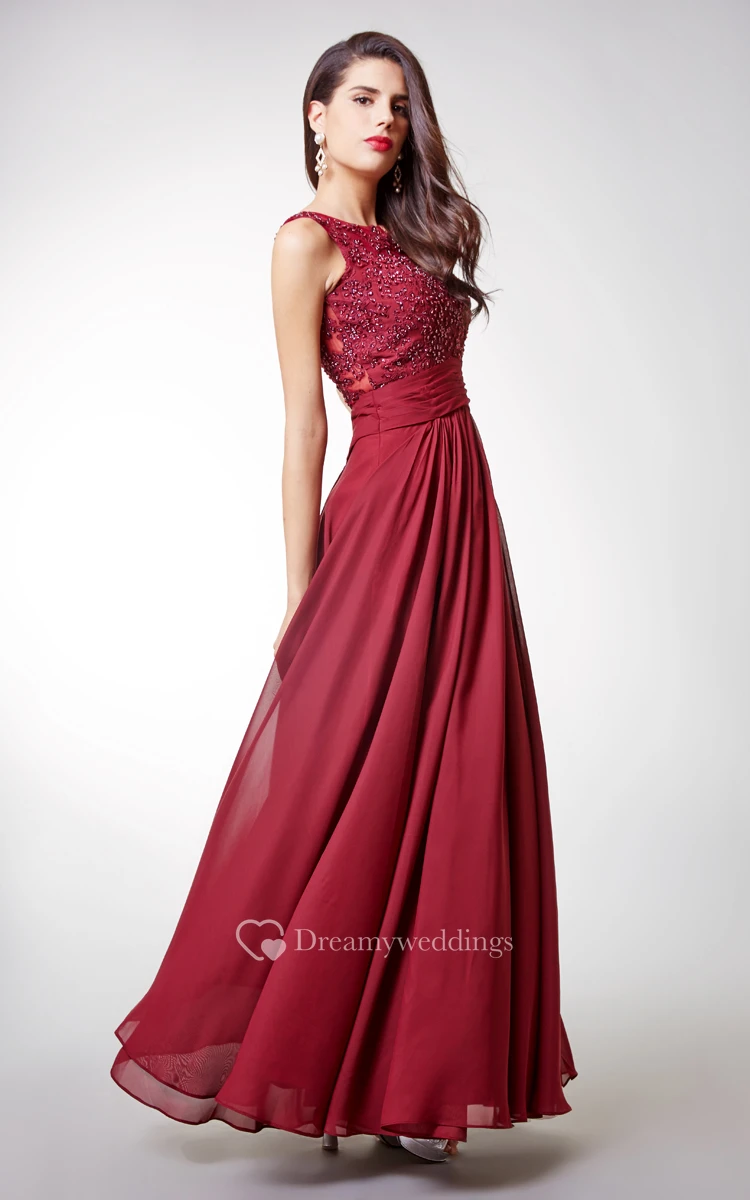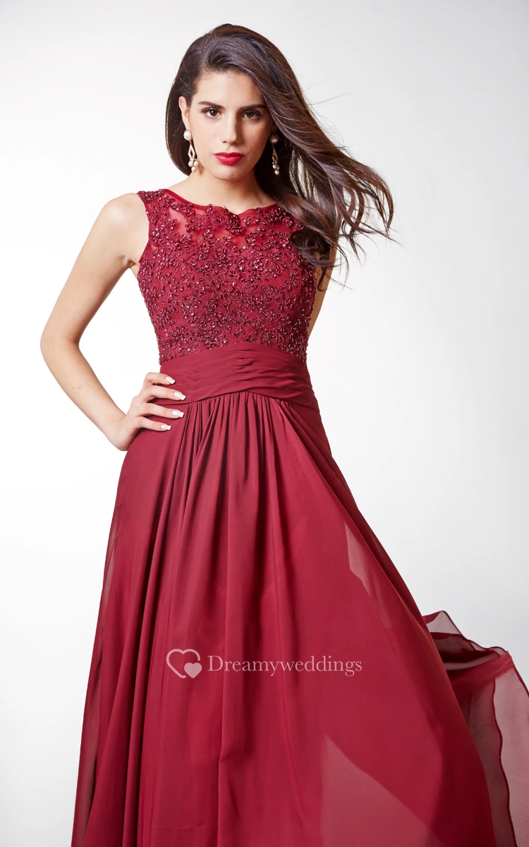 Gorgeous Cap-sleeved Long Chiffon Dress With Lace-embellished Bodice