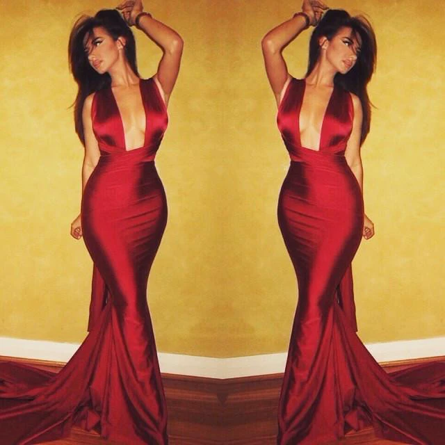 Gorgeous Deep V-Neck Sleeveless Prom Dresses Cross Back Long