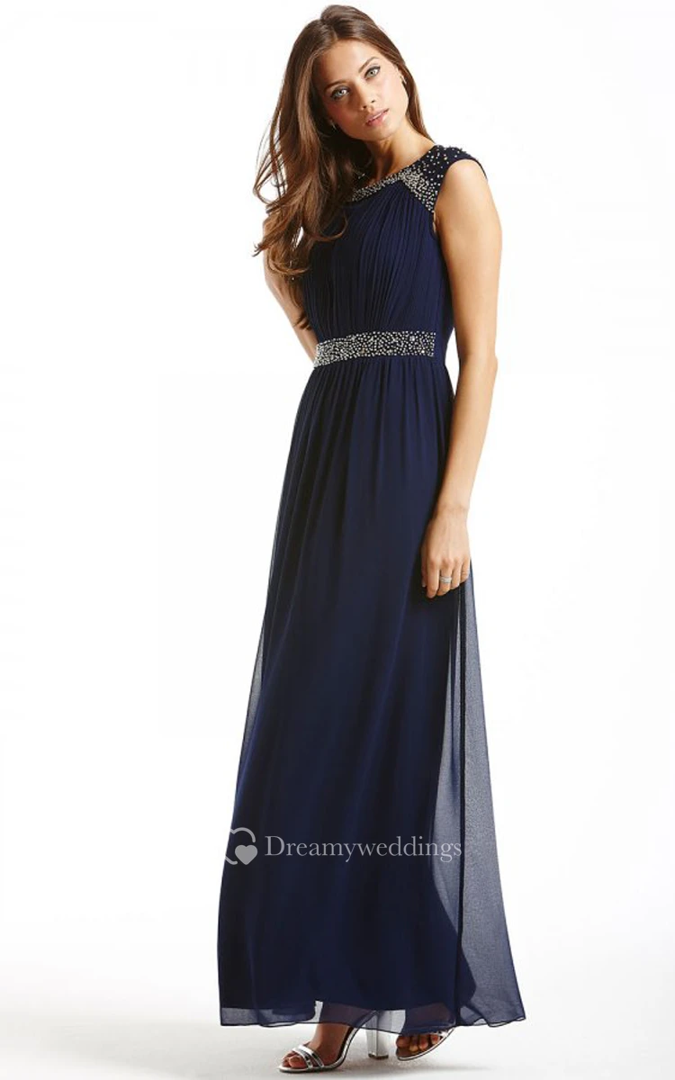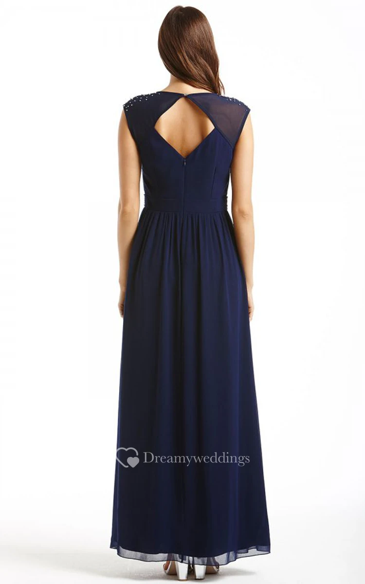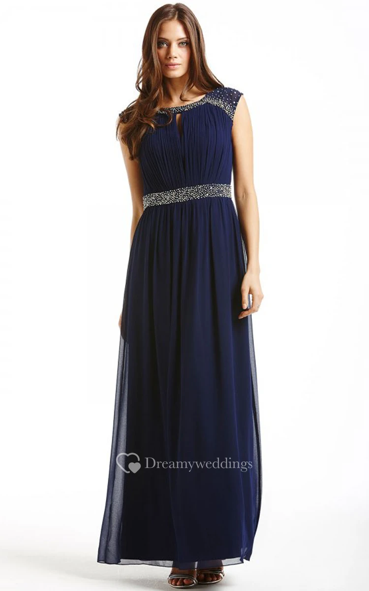 Gorgeous Long Cap-Sleeved Dress With Beadings