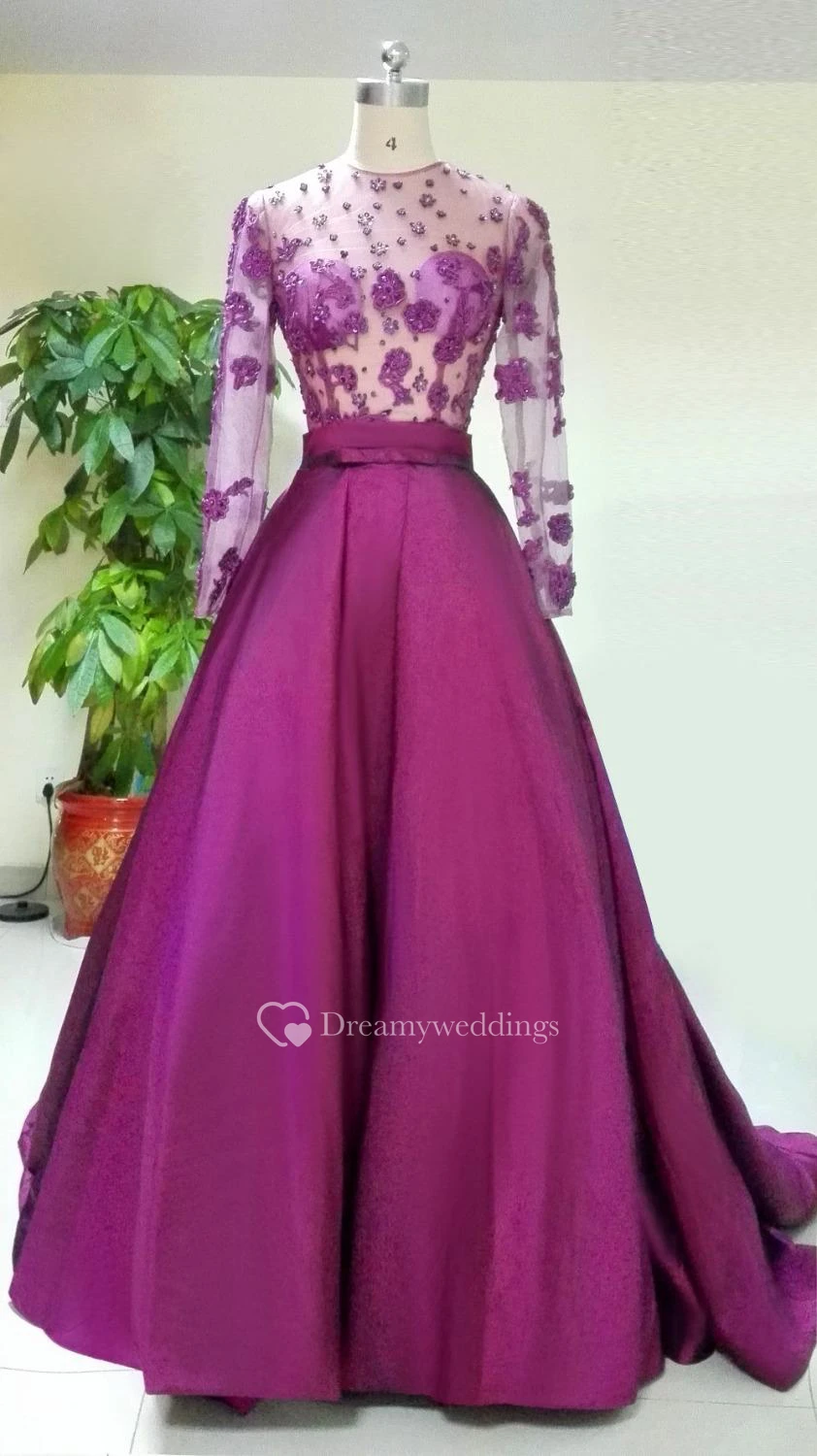 Gorgeous Long Sleeve Evening Dress Appliques Beadings