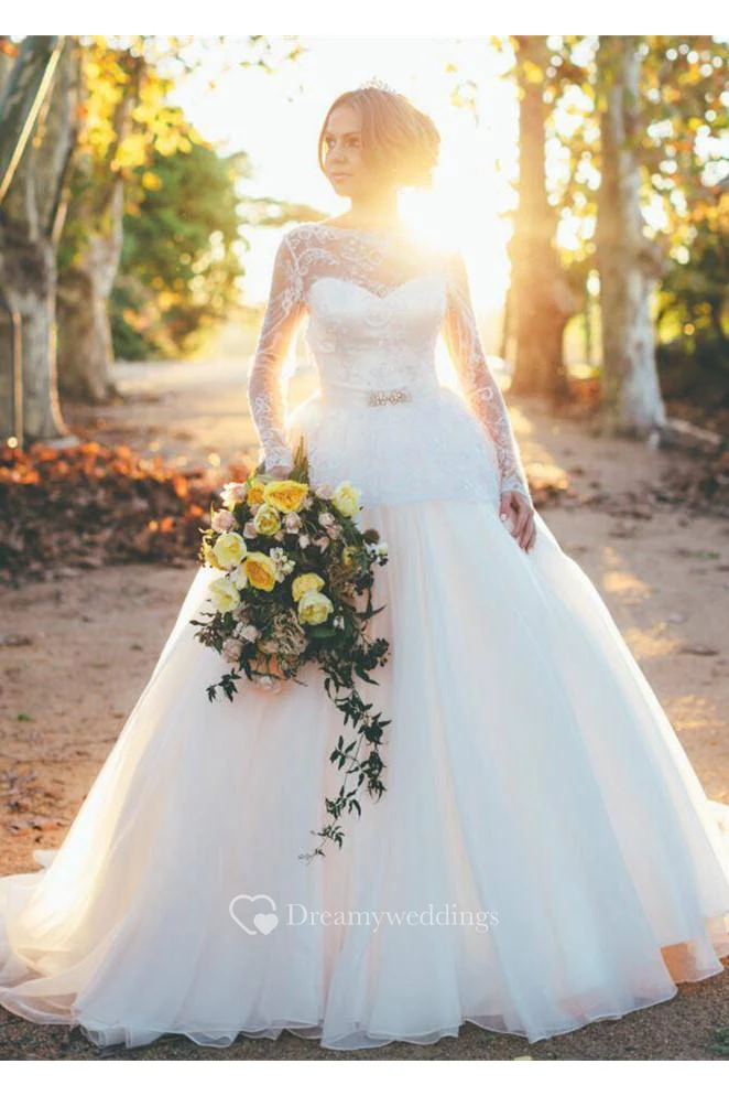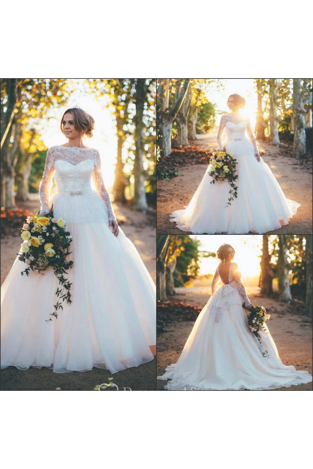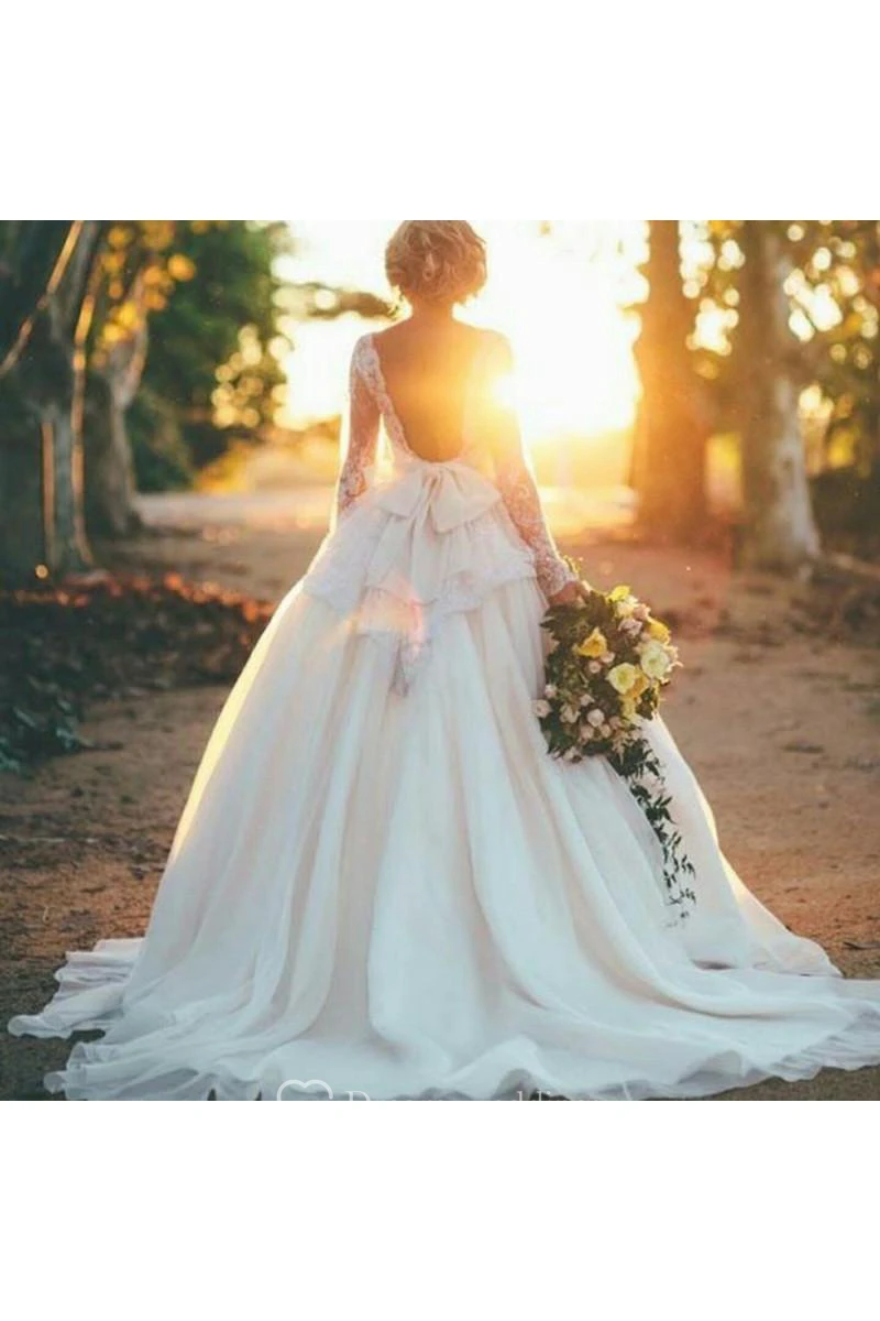 Gorgeous Long Sleeve Lace Wedding Dresses Princess Open Back