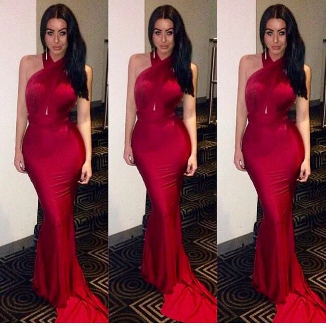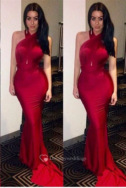 Gorgeous Mermaid Halter Prom Dresses Sweep Train Party Gowns